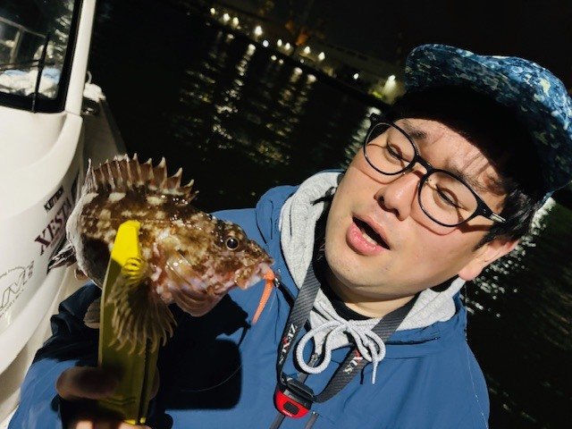 魚の反応はべた底ビタビタで、カウントを取りつつ着底、アクションを加えてステイすると竿先にグッと重みが!こういうアタリ方たまりませんねぇ~、と思っていたらカサゴ。アジは?
