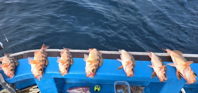 釣果が良くなってきた新潟・寺泊港「作十丸」さんより一年ぶりにオキメバルに釣行してきました!ポイントの佐渡沖まで約90分です。朝の一投目からアタリがあり6点掛け!その後も投入するたびにアタリがあり最高7点掛けもありました!このままならクーラー満タンかなと思っていましたが中盤から急にアタリが止まってしまいそのまま終了してしまいました。良型主体だったので釣り味は楽しめました!