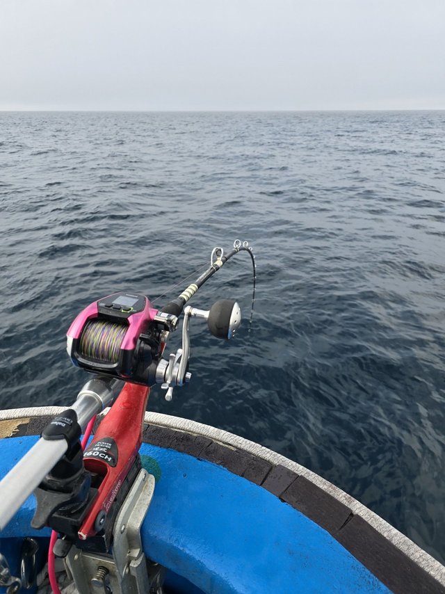 当店、店長、お客様と長井にある丸伊丸さんへマルイカ釣りへ行ってきました。朝のうちは前日?数時間前の風の影響でウネリが高かったので釣りにくかったですが、時間を追うごとにウネリはおさまっていき、イカの反応も増え始めましたが、とにかく難しい。着乗りはほぼなく、流してるとアタリがたまに出る状況。1回の流し時間も長いので、操舵室の魚探を見るとイカの反応はばっちり。自分の腕がなかったようです。居るのに釣れないので練習してこようと思います。今年はイカの数も多そうなので楽しめるシーズンになりそうです。