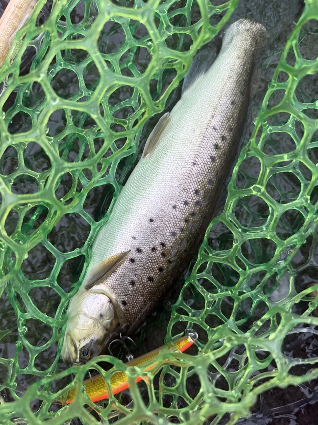 開始早々にGH120のハコネオレンジで今年放流されたであろう35センチほどのブラウンがヒット!
