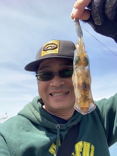 その後、アオリイカっぽい影の4~5杯の群れが、エギを追っかけてくるが、3.5号のエギだとなかなか触らないので、2月に呼子に行ったときの「ナオリー1.5」があったので使ってみると警戒しながらも、1杯だけ抱いてくれました。なかなか渋い釣果でしたが、新規開拓出来て良かったです。この新子サイズのアオリイカ、何月に産まれた個体だろう?2月くらいなのかなぁ~。親イカの群れは、もう去ってしまった後なのだろうか?息子もDYFCの海上釣り堀楽しめたようで良かったです。