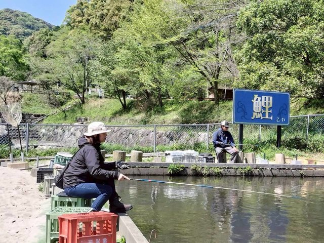 こちらではコイやヤマメ・季節限定でエビ釣りもできる施設です(*'ω'*)