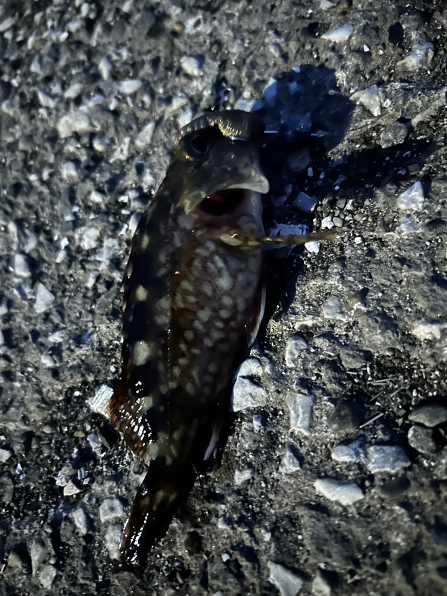 我慢の限界まで待って上がったのは小さなギンポ笑