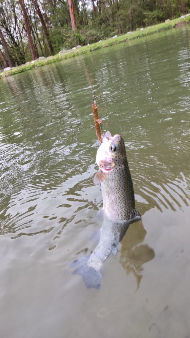 その後すぐに岸際にフライがですぐにキャスト巻き始めすぐにドスンとひったくるバイトがありすかさずフッキング!!しっかり重みが伝わった所で追いフッキングをしたところで体が持ってかれるくらいの猛烈な引きを慎重にいなしながら釣り上げたのは4キロオーバーの体が婚姻色でグラデーションがかかったような綺麗な色をしたトーマンでした。