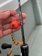 今回も遠投せず下投げで足元。軽くしゃくってポーズ。何と一発目でヒット♪