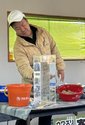 まずは事務所で杉本インストラクターによるレクチャー。水槽でバラケ方などを確認。粒戦を使わないダンゴタッチなブレンドも披露。瀑麩の特徴、縦バラケを活かしながらそれを補うために凄麩などをブレンド。まとめやすくしっかり練っても瀑麩のおかげでしっかりバラける。まだまだ発展途上の新エサ。これからも様々なブレンドが出てきそうです。