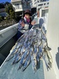 序盤、潮が早かったのと棚が70メートルと深いからか、アタリがいまひとつ取りづらい感じでしたが、だんだん慣れてきてポツポツ釣れ続け34本で終了♪反応が早いテンヤカラー3本をローテーションで使い回しする感じで数が伸びました。魚の型も良く楽しめました!