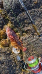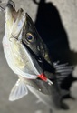 干潮で水位が低いタイミングでのエントリーだったので上中層はあまり期待せず手早く探って反応無く、ボトム付近をチコチコしているとちっこいメバルをキャッチ!その後メバルをもう1匹釣ったところでメバルの反応が無に、、