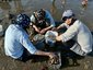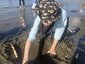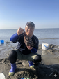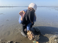 最初に掘っていたポイントは去年より貝が少ないような感じだったので、場所を移動して波打ち際に近いポイントに移動。すると大粒のアサリやハマグリがたくさん出てきて取り放題の宝の山状態。