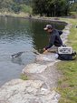 周りは釣れているので焦っていると娘に場所を譲ってもらい閉園まじかに良型のバスをゲット。