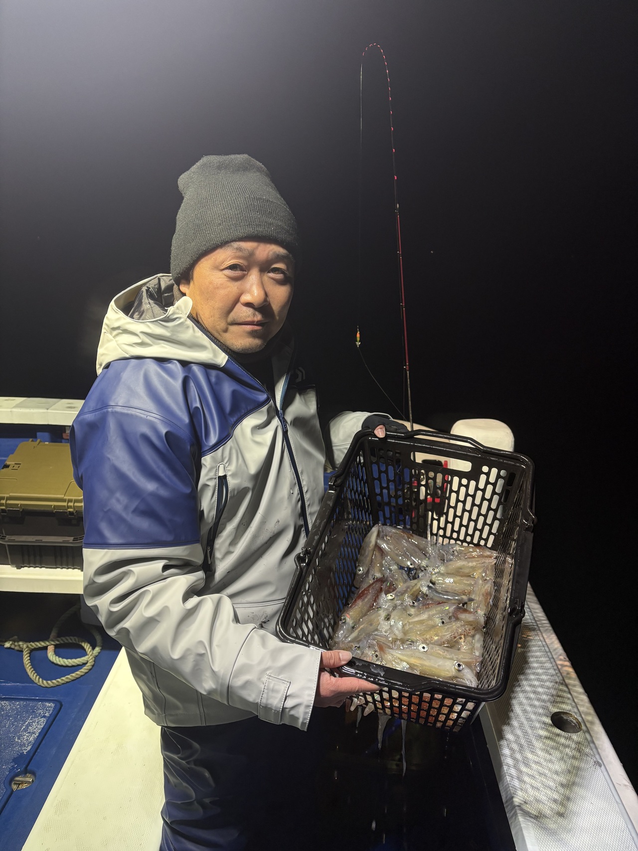 好釣継続中の沼津湾内、夜焚きマルイカに東松山高坂店見目店長と行ってきました