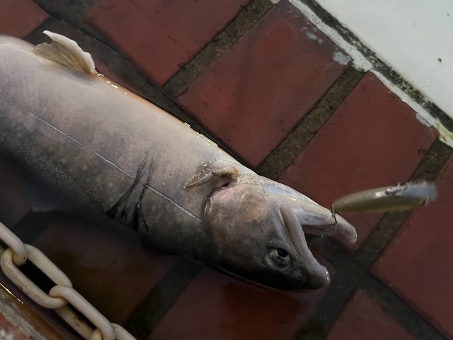 途中、イワナの溜まり場の様な場所があり、立て続けにヒットしました。