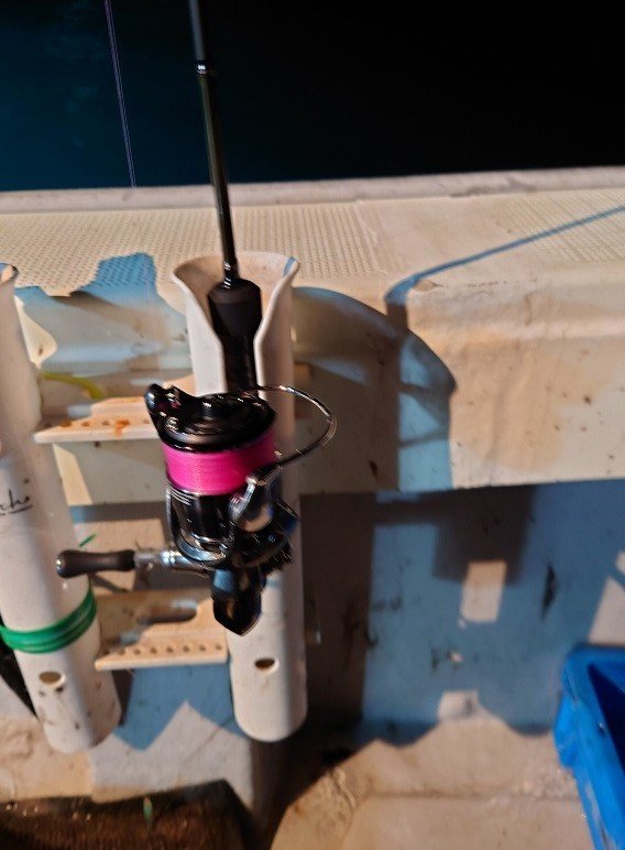 釣り場へ着いて足元にアジなどがキラキラしていたので、とりあえずアジングタックルでキャスト