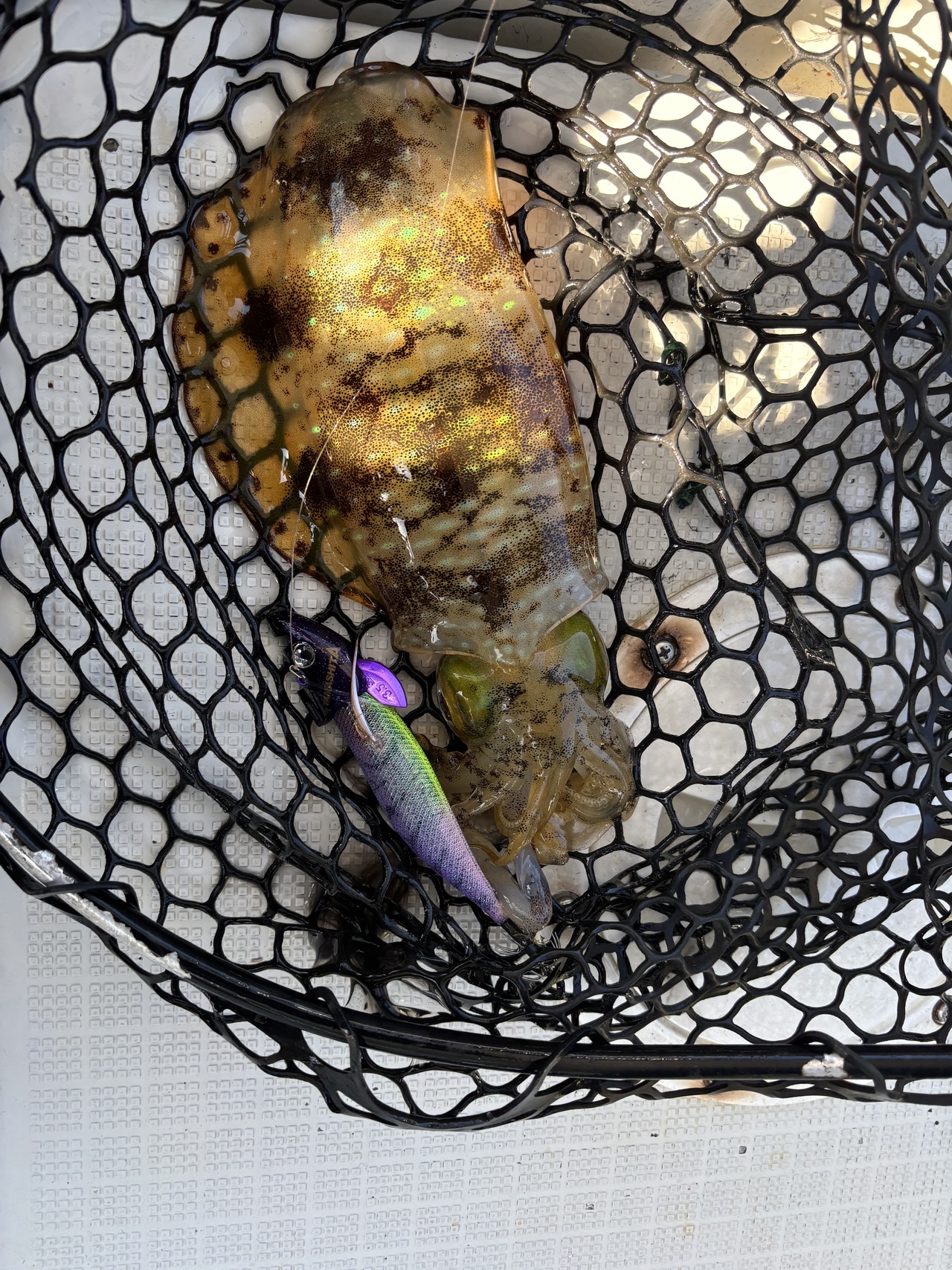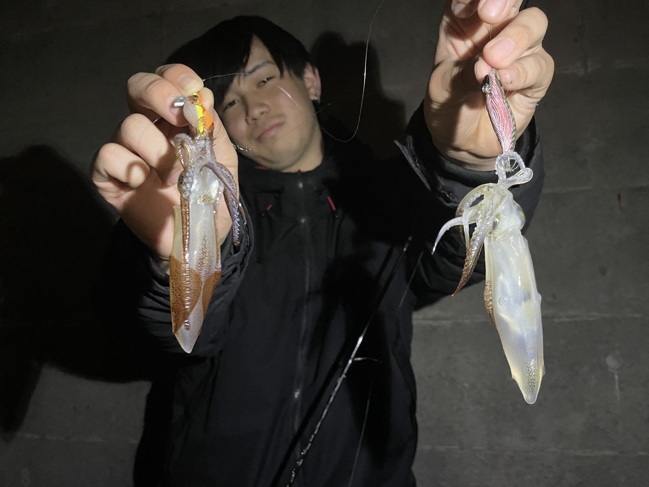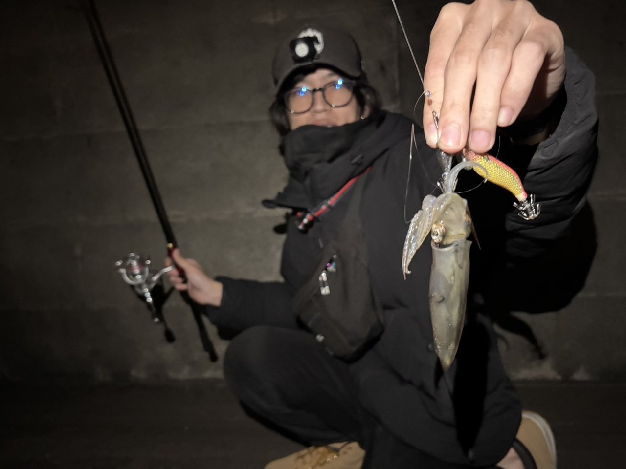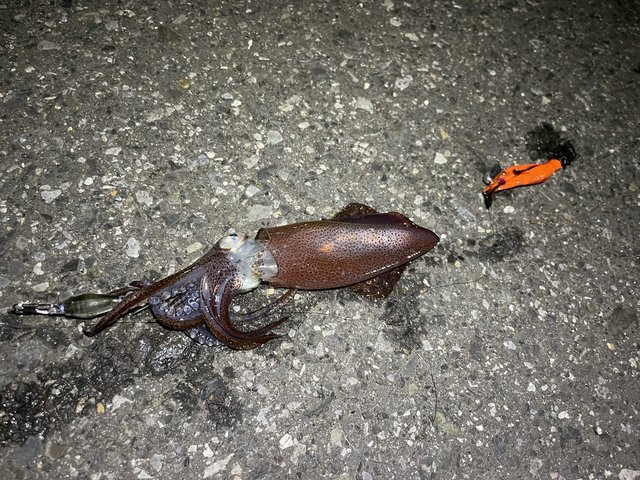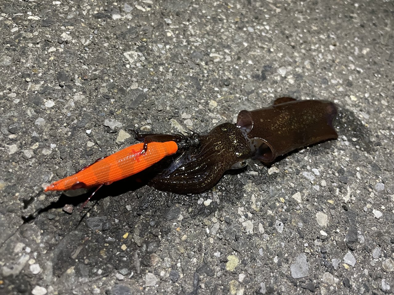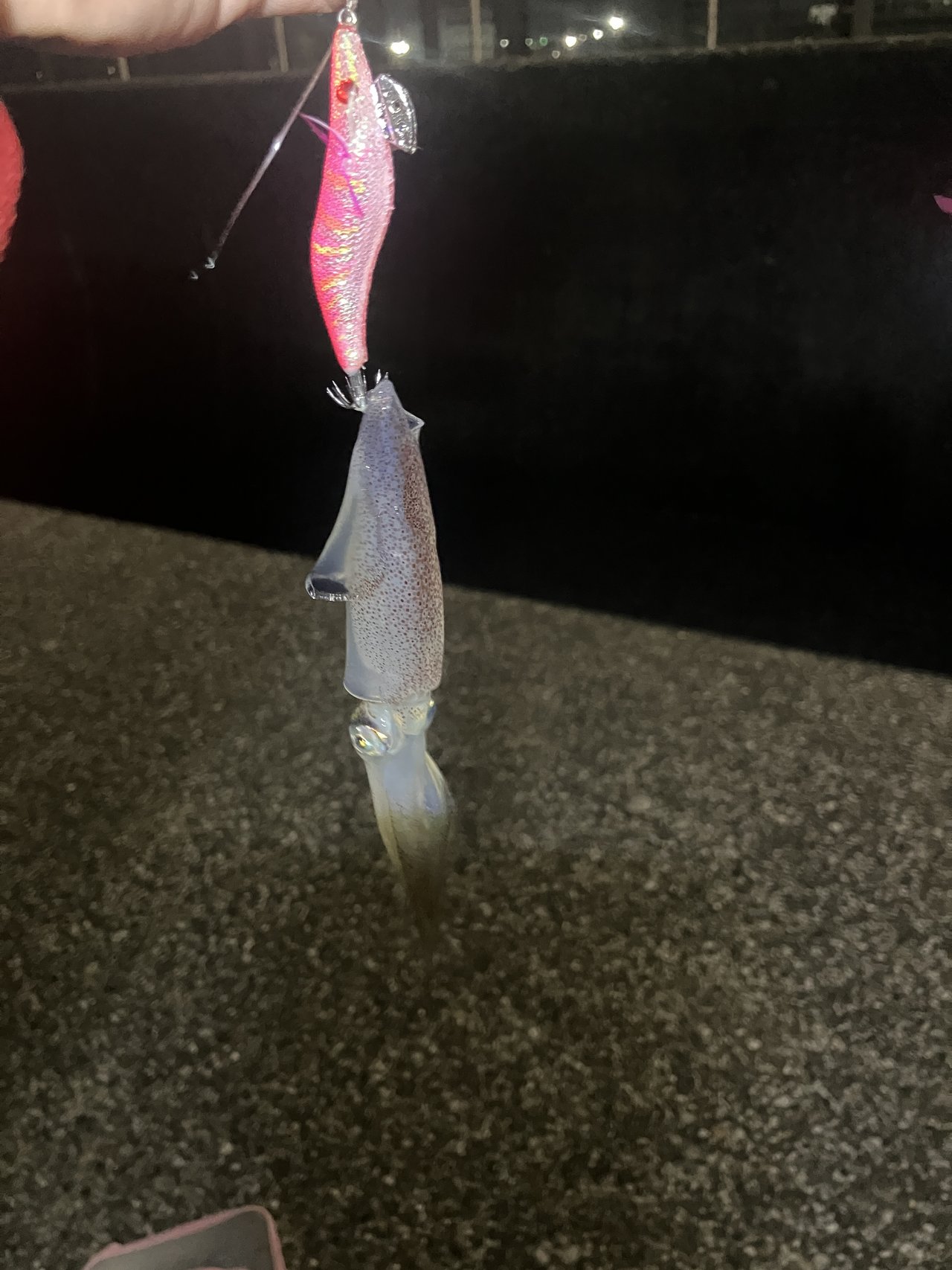 当日はイカからの反応が少なく渋めの状況でしたが、カラーやシンカーウェイトを変えながらなんとか引っ張り出せました笑