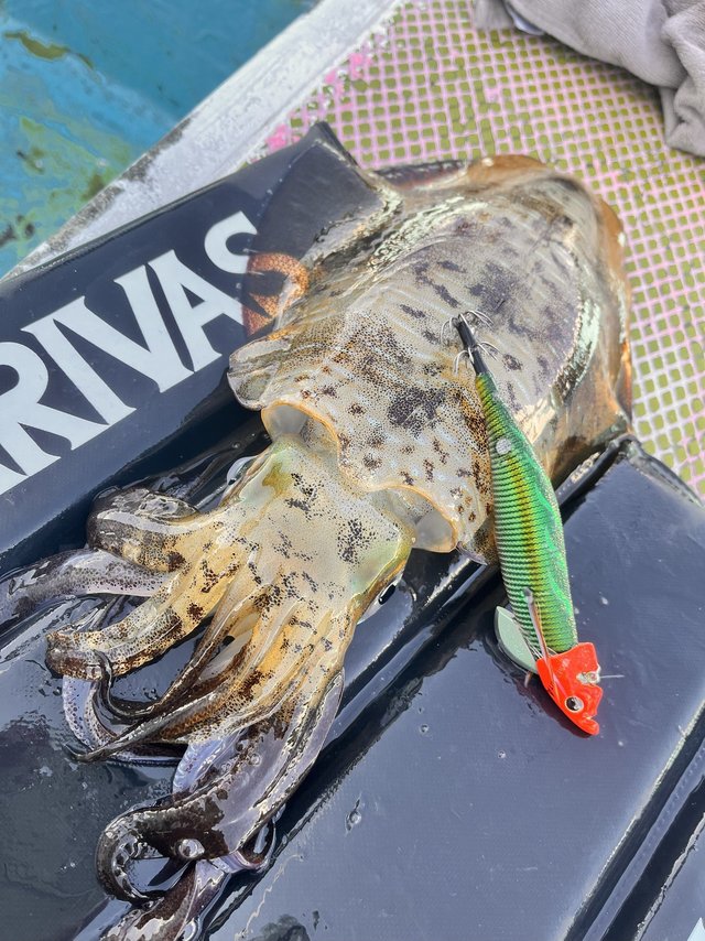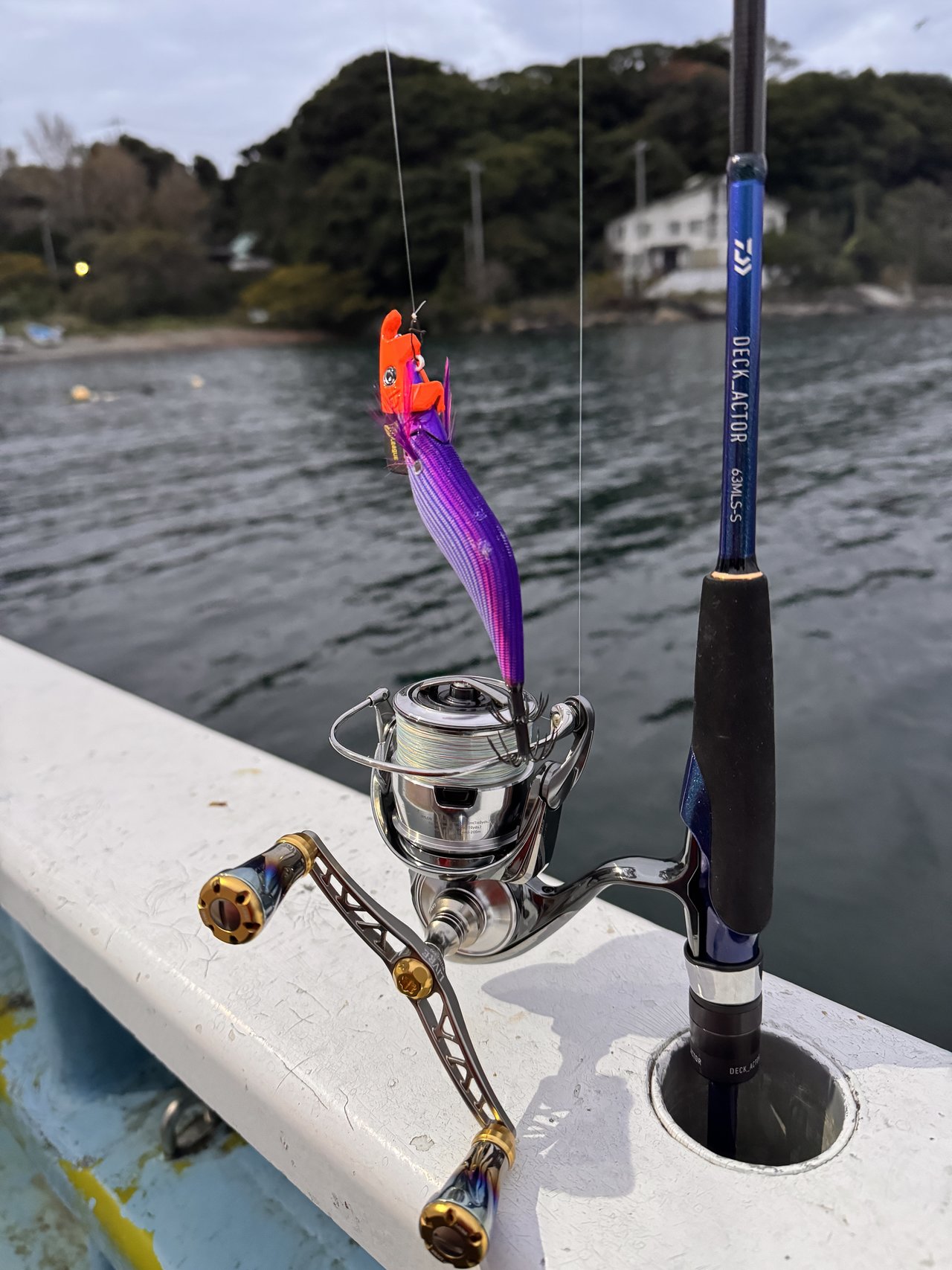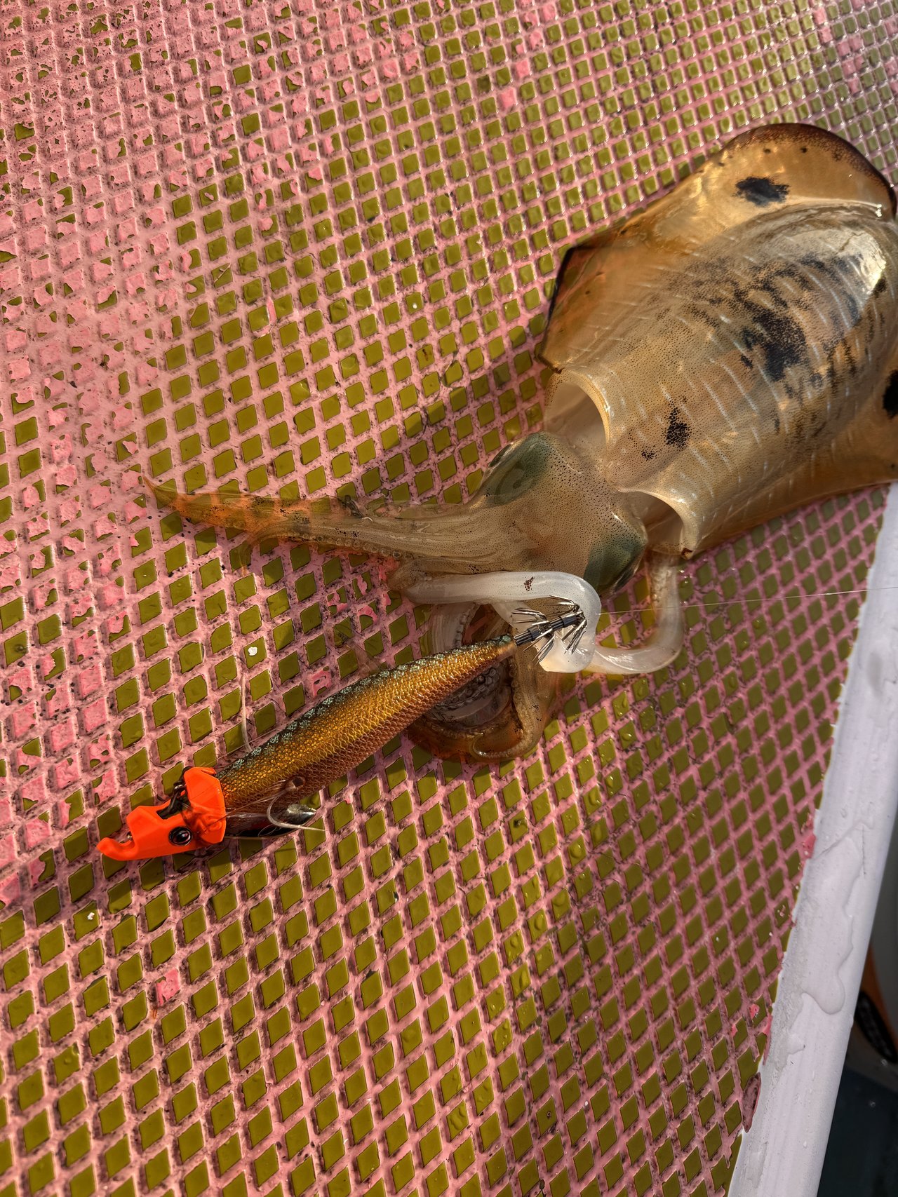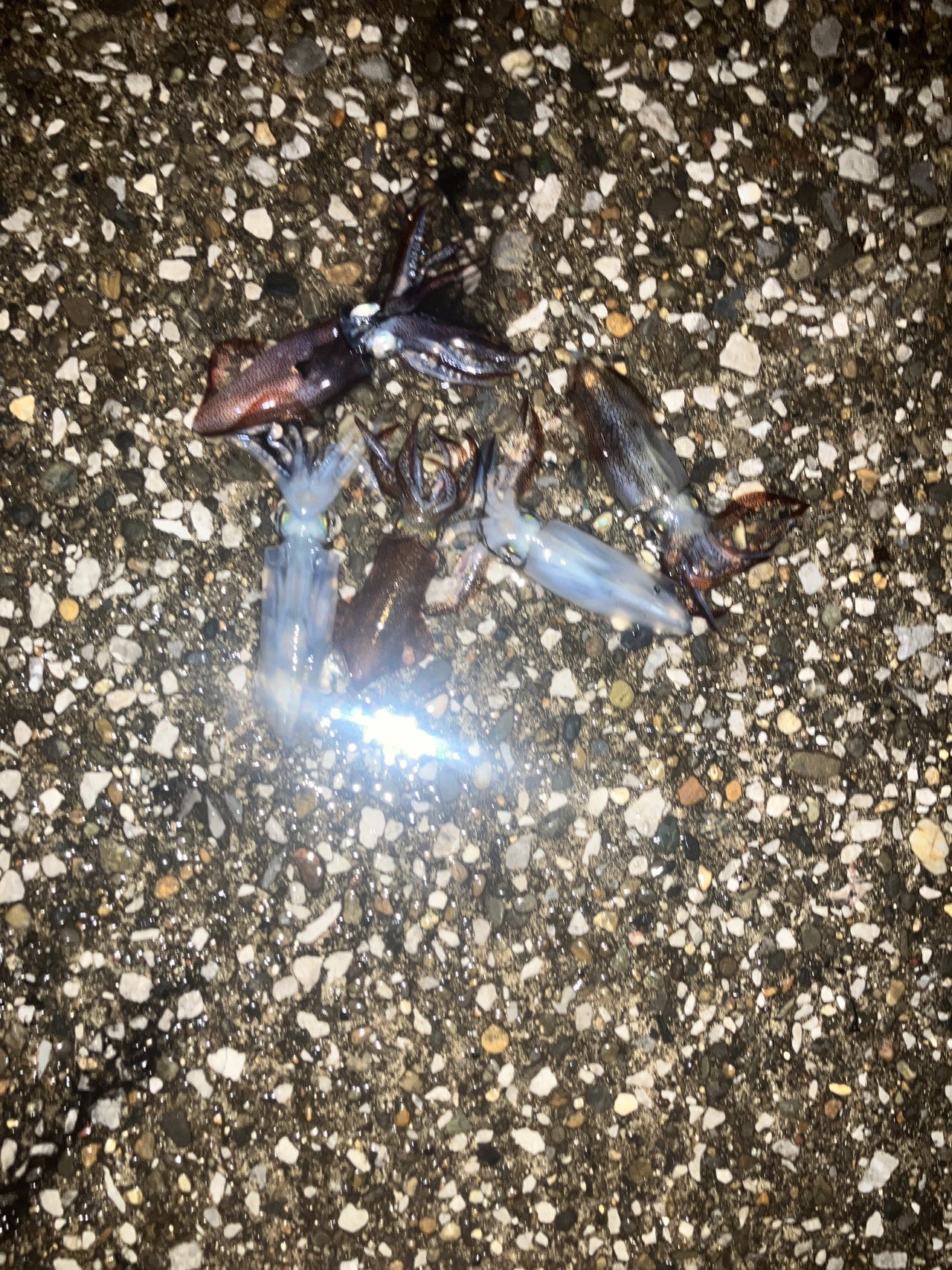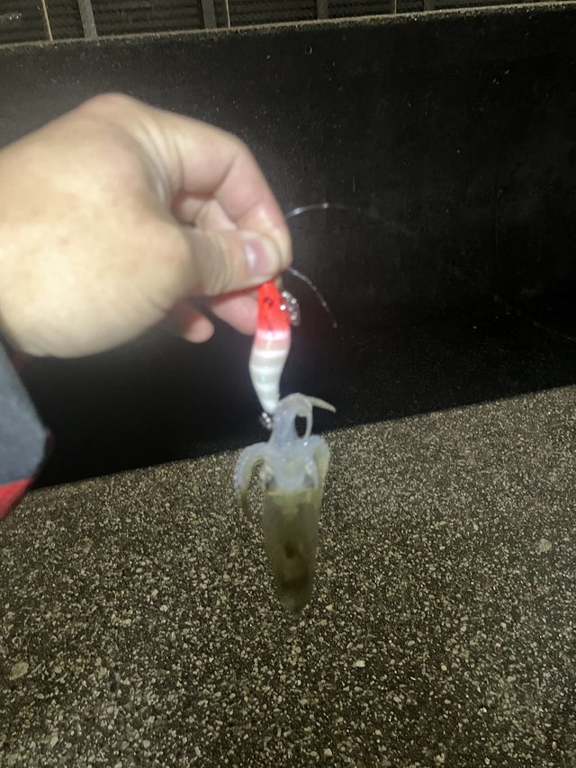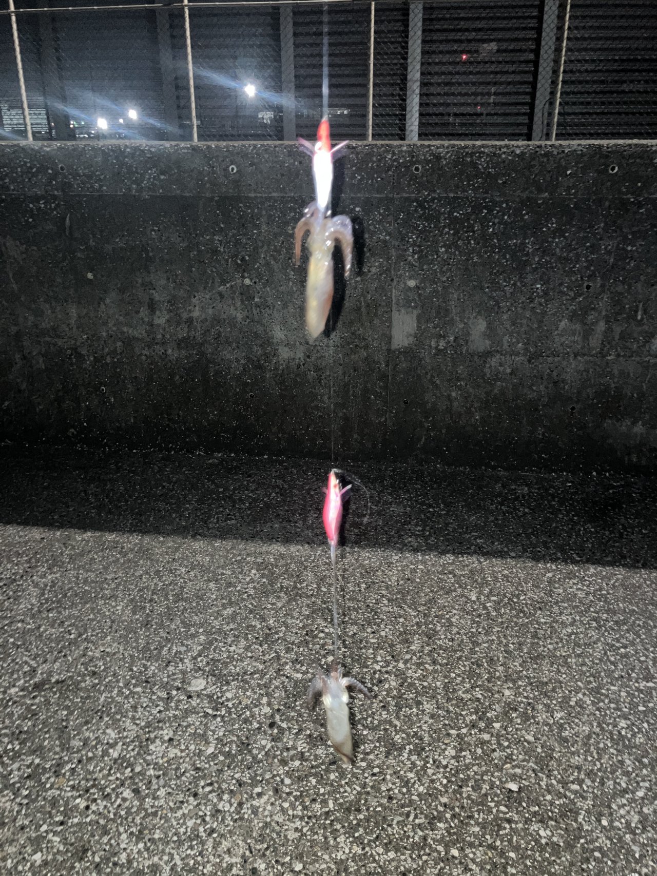 当日はイカからの反応が少なく渋めの状況でしたが、カラーやシンカーウェイトを変えながらなんとか引っ張り出せました笑