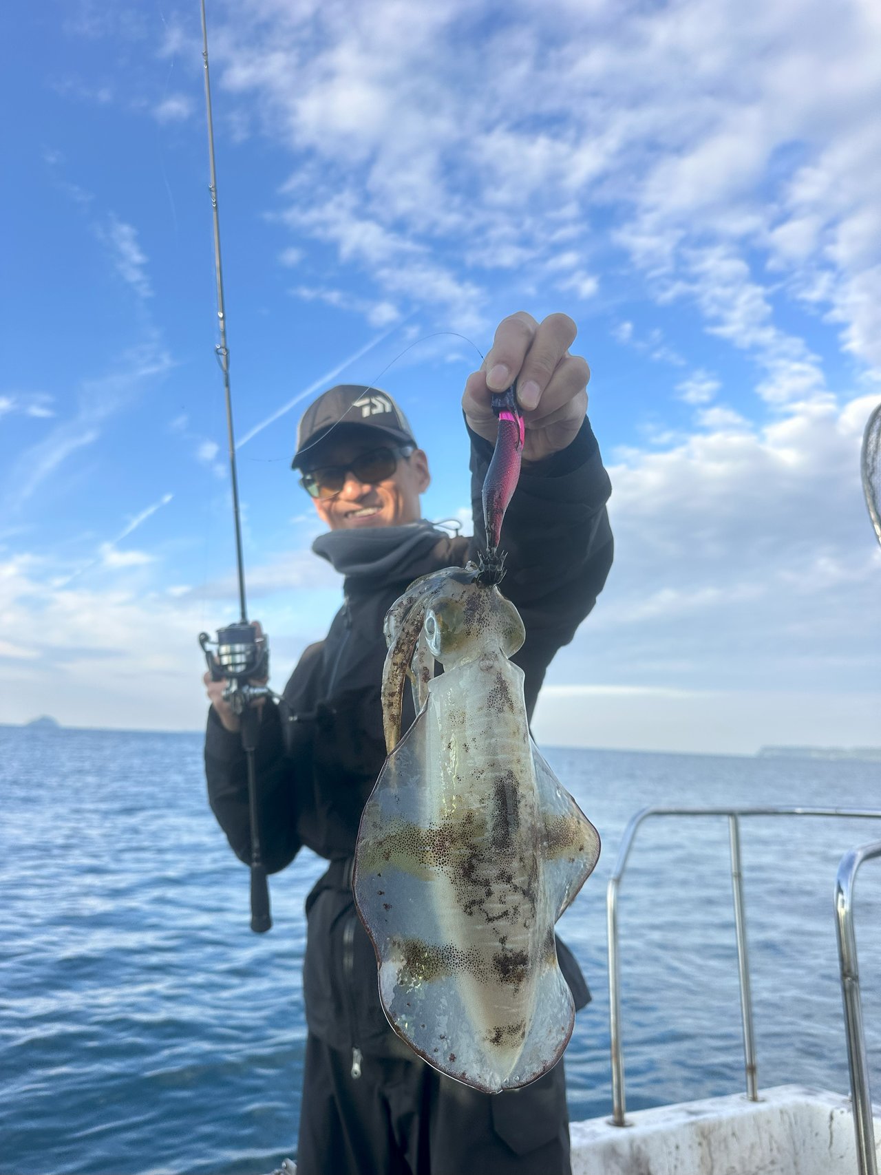 段々と風が強くなり船も流れるようになってイカの反応も良くなって来たのですが昼前くらいには南西爆風になってしまい、早上がりとなってしまいました!