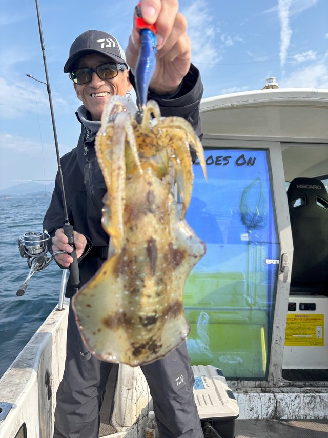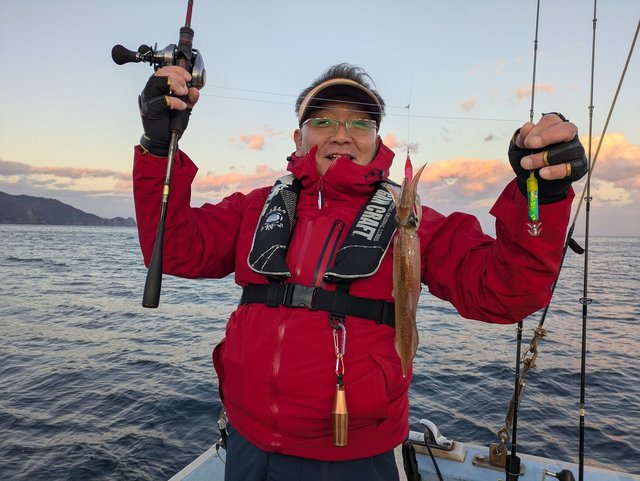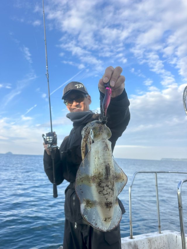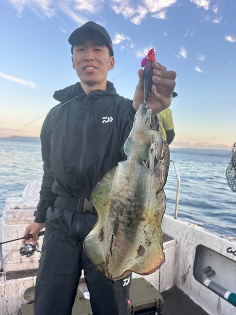 館山洲崎にあります赤沼丸さんより午後船のティップランエギングに行ってきました。最近の2日間はトップで二桁と絶好調!久しぶりに今日は期待できると思いながらの釣行。港からわずか5分ほどでポイント到着、水深は20mほど。潮は流れていないようで30gでスタート。一投目まっすぐに落ちていくので厳しいな、と思いながら着底後、シャクリ上げてからのステイ…乗ってくれました。隣の方とダブルヒットでまず1杯目。2投目、隣の方とまたまだダブルヒットで2杯目。3投目、今後は私だけ乗ってくれて3杯目…好調過ぎます。今日は2桁いっちゃうかな~と思いましたがその後は苦戦で忍耐の時間が多く、沖上がりの17時半まででアオリ2杯、モンゴウ1杯追加で終了。後半は苦戦でしたが、本命5杯の大満足釣行でした。ちなみに私、隣の方ともケイムラベースでした。