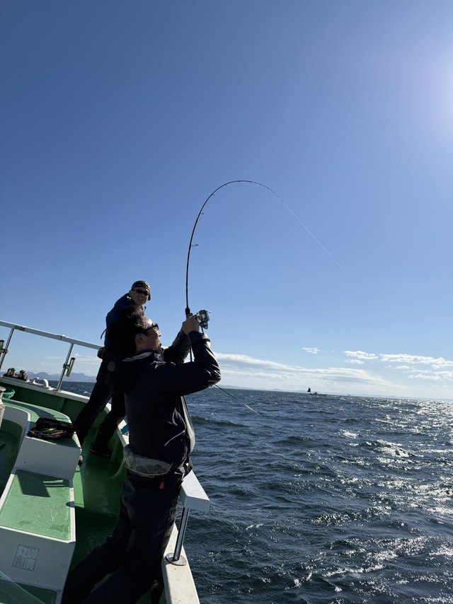 なかなかアタリもなく、船長も参戦し、数回の流しで船長にヒット!さすがです!