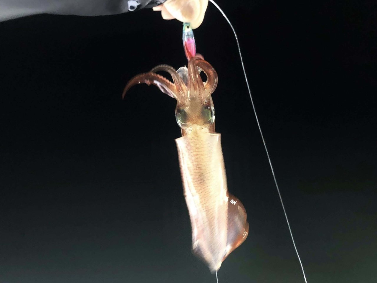 この日はかなり調子が良い日だったようで、必死のパッチでシャクリ続けた私はアオリイカ4杯、モンゴウイカ1杯の釣果。これだけ釣れれば満足なのですが、隣で釣っていた宮崎さんはアオリイカ8杯と絶好調でした。