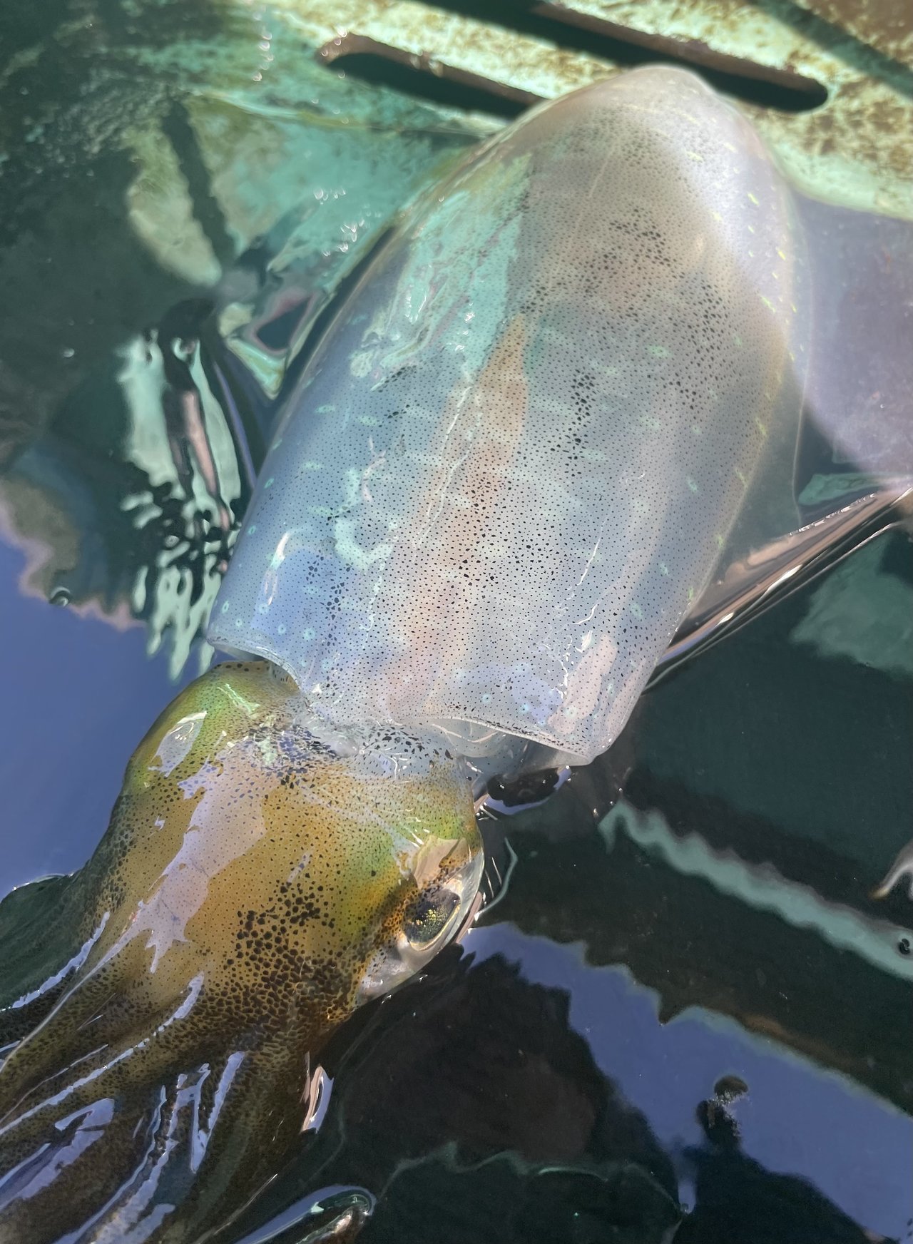 慎重に上げてくると1.1キロの元気なオスのアオリイカでした♪