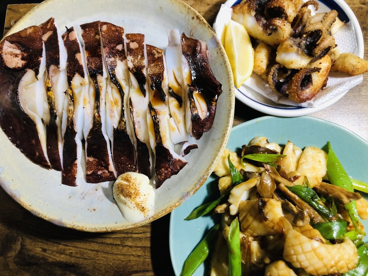 今回釣ったイカは刺身や、ユッケ風等にして頂きました♪
