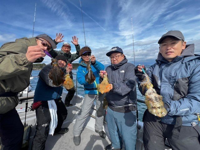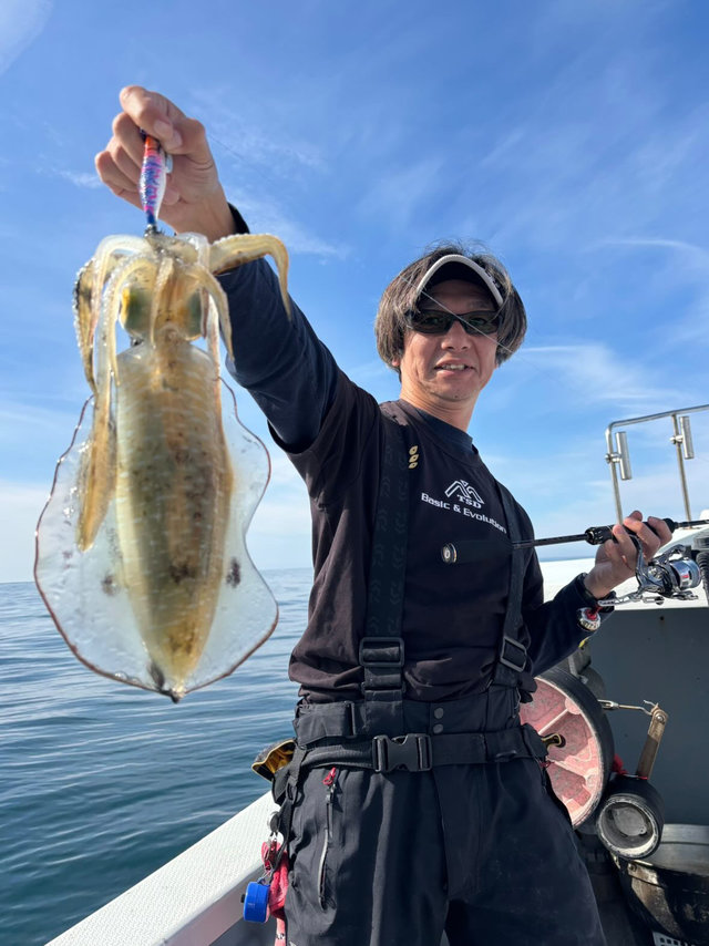 なかなか船中で連発とはならず、その後はポツポツとした釣れ方でしたがお昼過ぎには全員本命アオリイカをゲットできました。