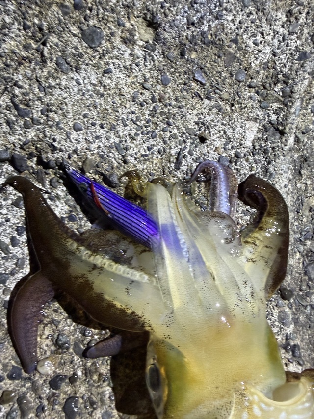 ちなみにこの日はシルエット系の反応が良く、色々なメーカーのエギやカラーを試しましたがパープルパープルとレッドパープルでの釣果がほとんど。