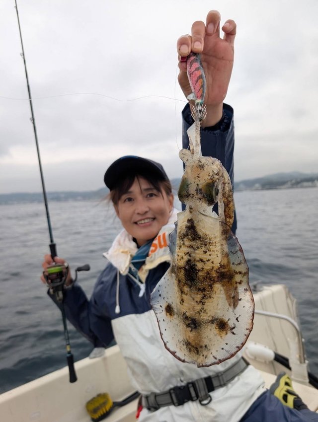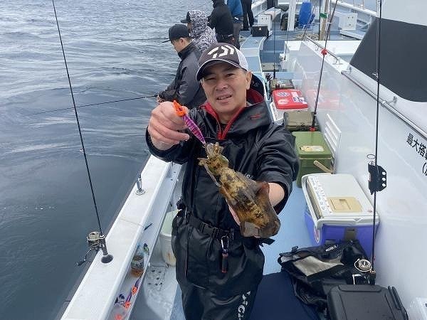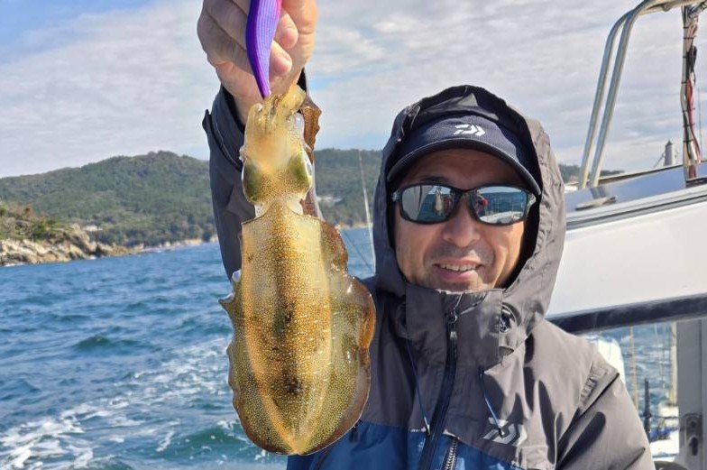 遊漁船「シャイニー」さんで約1年振りのティップランエギング。昼からでほど良い風で良い条件と勝手に思っていましたが、予想以上に強風でザブザブ、予定のポイントまでは行けず風裏になる近場での釣りになりましたが熊谷店長、初心者菅野さんになんとダブルヒット!大丈夫これは釣れる、とシャクリ続けましたがアタリ無し!!船長がポツッと1パイ、熊谷店長、菅野さんまたダブルヒット!から1つバラシで結局船中4ハイで私は全くわからないエギにキズが1つあったのみで終了~ボウズ!!。早々にリベンジ決定!