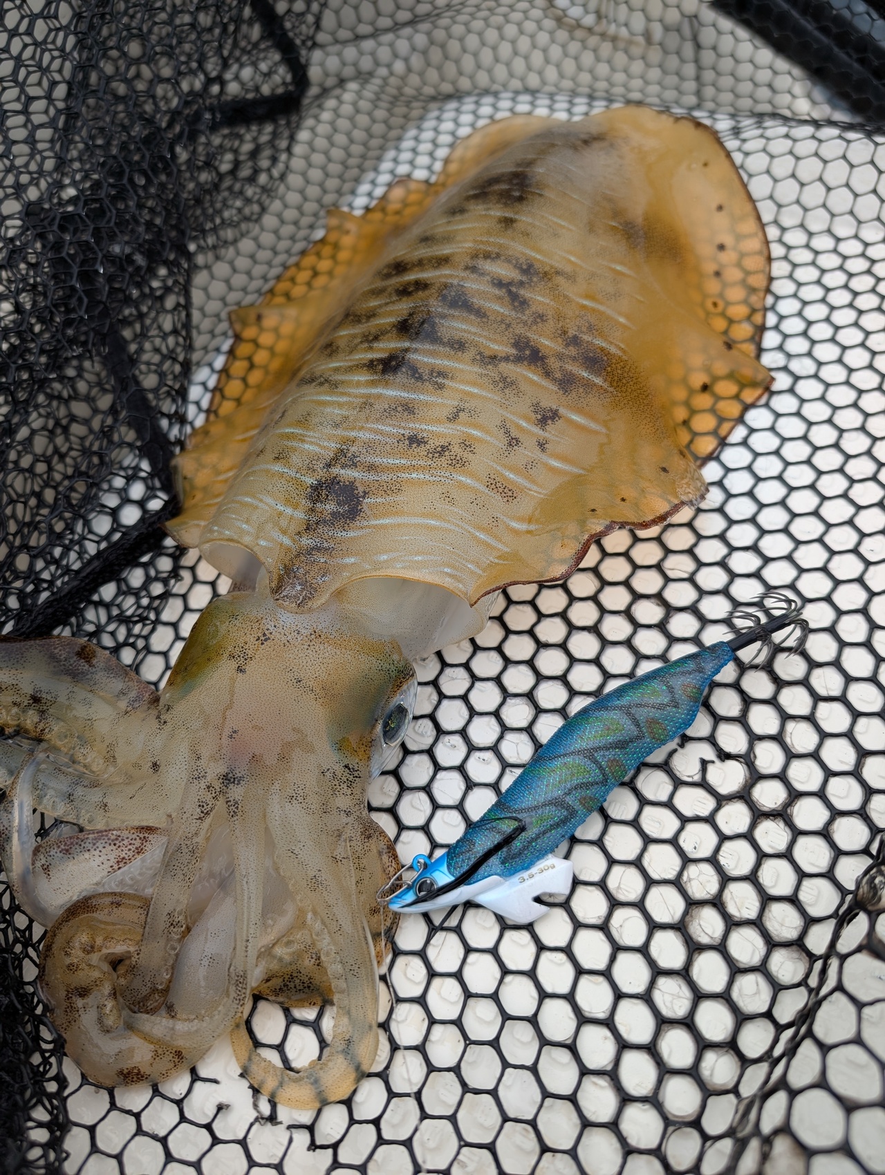 気を取り直して集中!7時過ぎたころやっと念願のアオリイカGET!!!嬉しすぎて大興奮♪写真撮りまくりです!