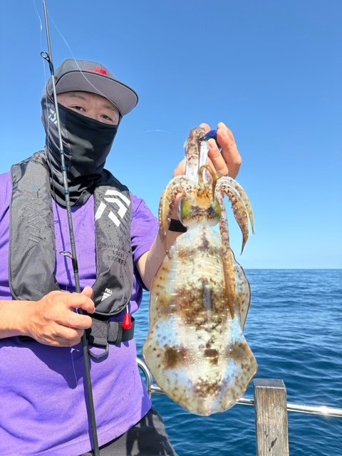 男鹿が中止になったので急遽前日の21時に新潟に行くことを決めました!釣りウマで明るく優し西船長の「沙霧丸」に乗船。盛岡を0時に出発(寝れません)仙台で仲間と合流して新潟村上市まで合計5時間。寝不足と粟島までのうねりで危うくダウン寸前で持ちこたえ実釣開始!一投目で気持ちの良い「トンッ」と念願のアオリイカをキャッチ!その後、船中賑やかにポツポツ釣れるが潮が流れず風も逆となり、なかなか厳しい時間が続いたが、後半にエギと誘い止めのパターンがハマり6連発!平均500g!エギのカラーは大事ですね。12時過ぎてからまた睡魔と熱中症で危険信号がでたため、自分だけ早めに納竿(キャビンで爆睡)。往復600km以上の遠征となったがとても満足しています。「沙霧丸」めちゃくちゃ良い船ですよ!新潟へのチャレンジャーは井口までお問い合わせください。