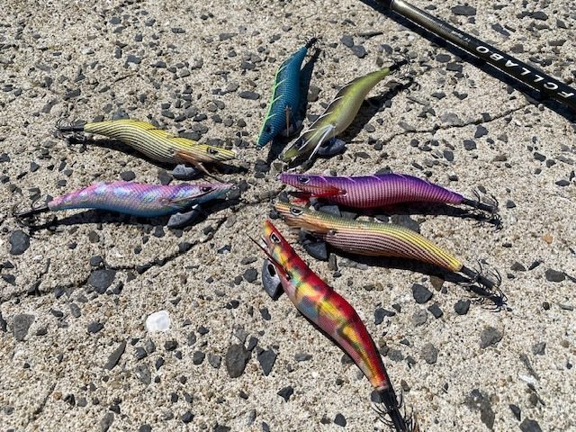 今回は水深も浅い&イカも小型が多いという事で2.5号のエギを使いました。パープル・ケイムラ・ピンクなどのエギが活躍しましたよ!根掛かりもあるので多めにご用意下さいね♪旬な釣り物!皆様もぜひ!