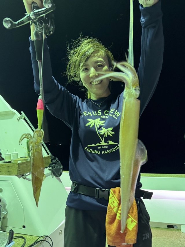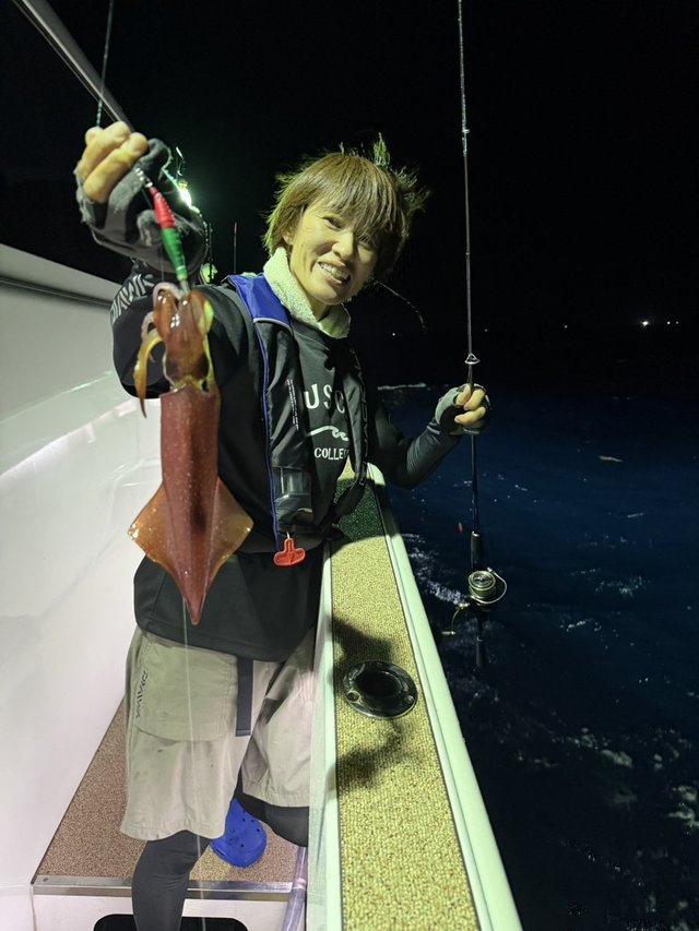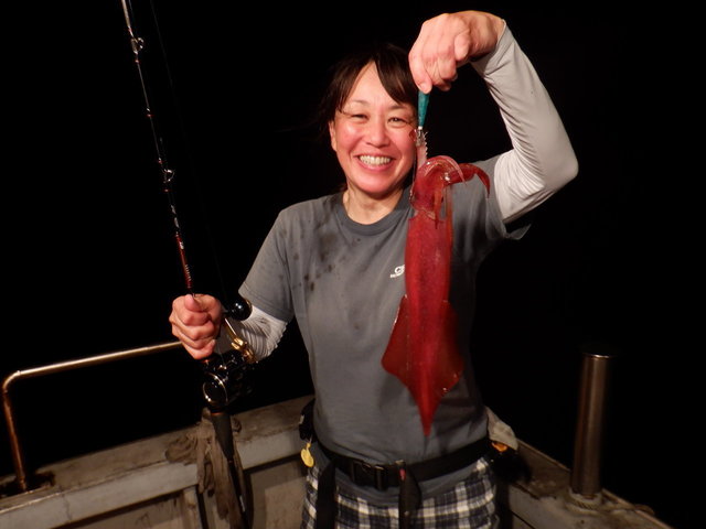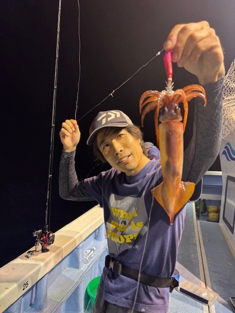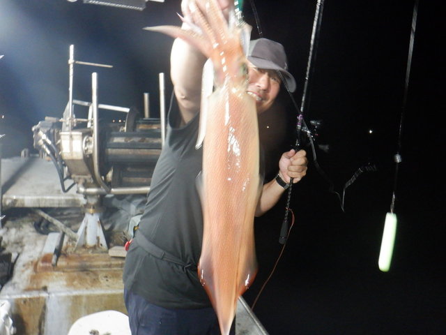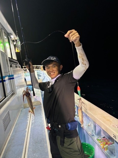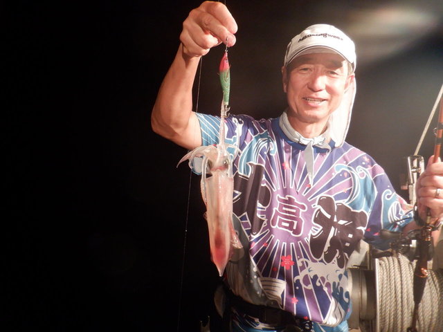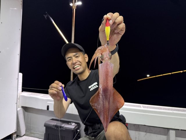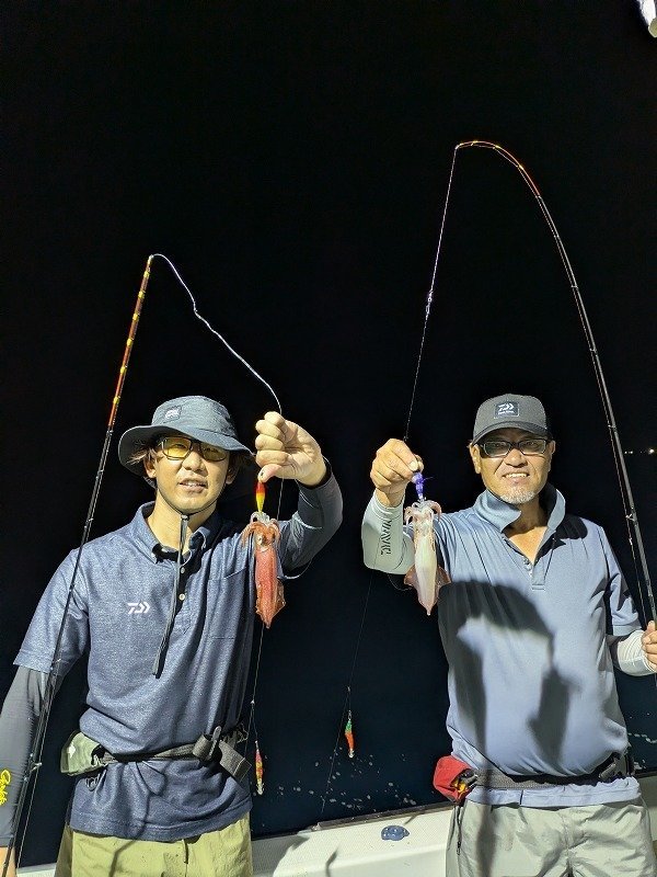 同行していた枇榔さんとお客様は私よりも浅いタナでイカを掛けていました。集魚灯を使うとイカのいる水深が変わってくるのでヒットする水深を探すのもイカメタルの楽しみです。
