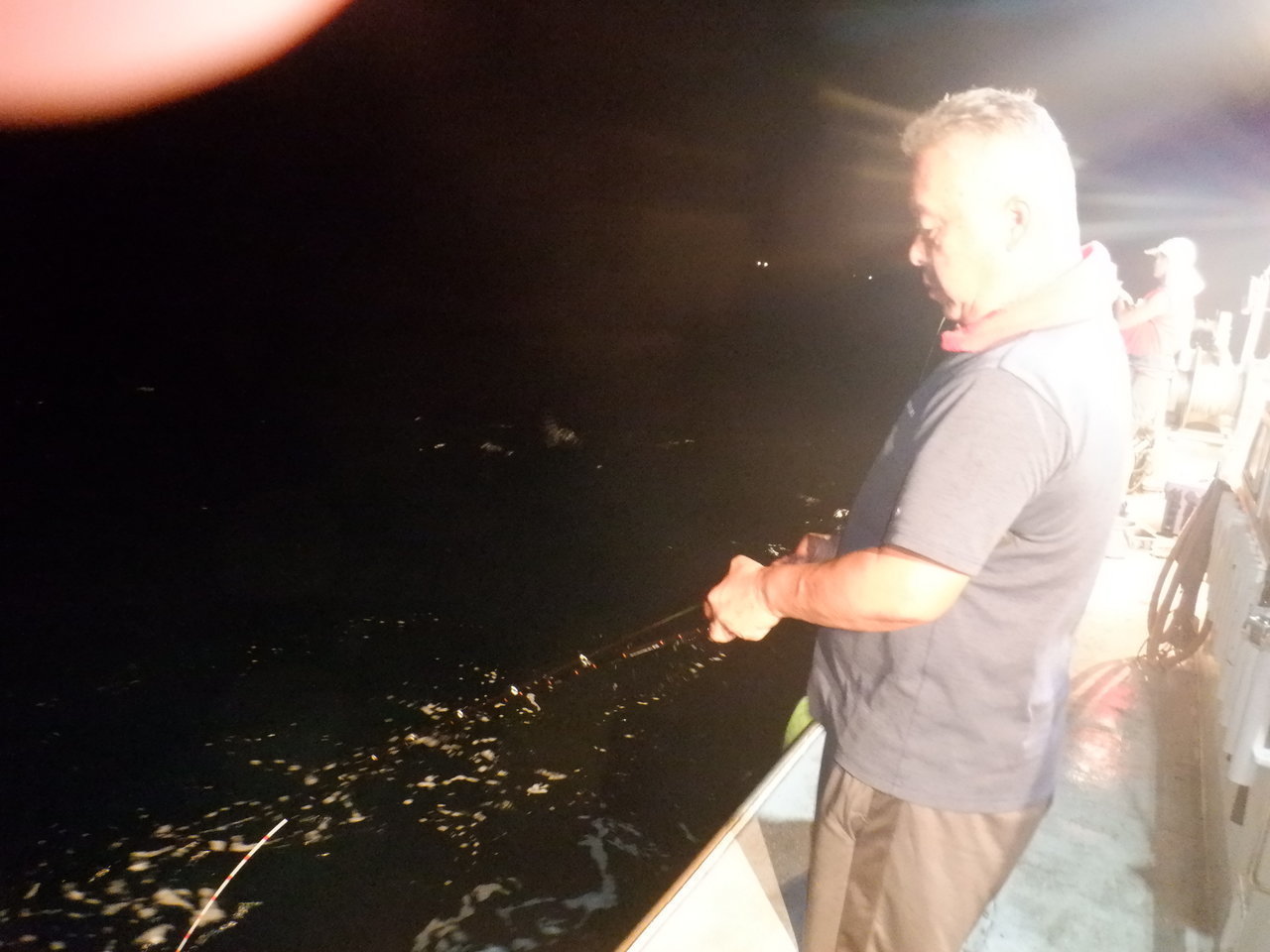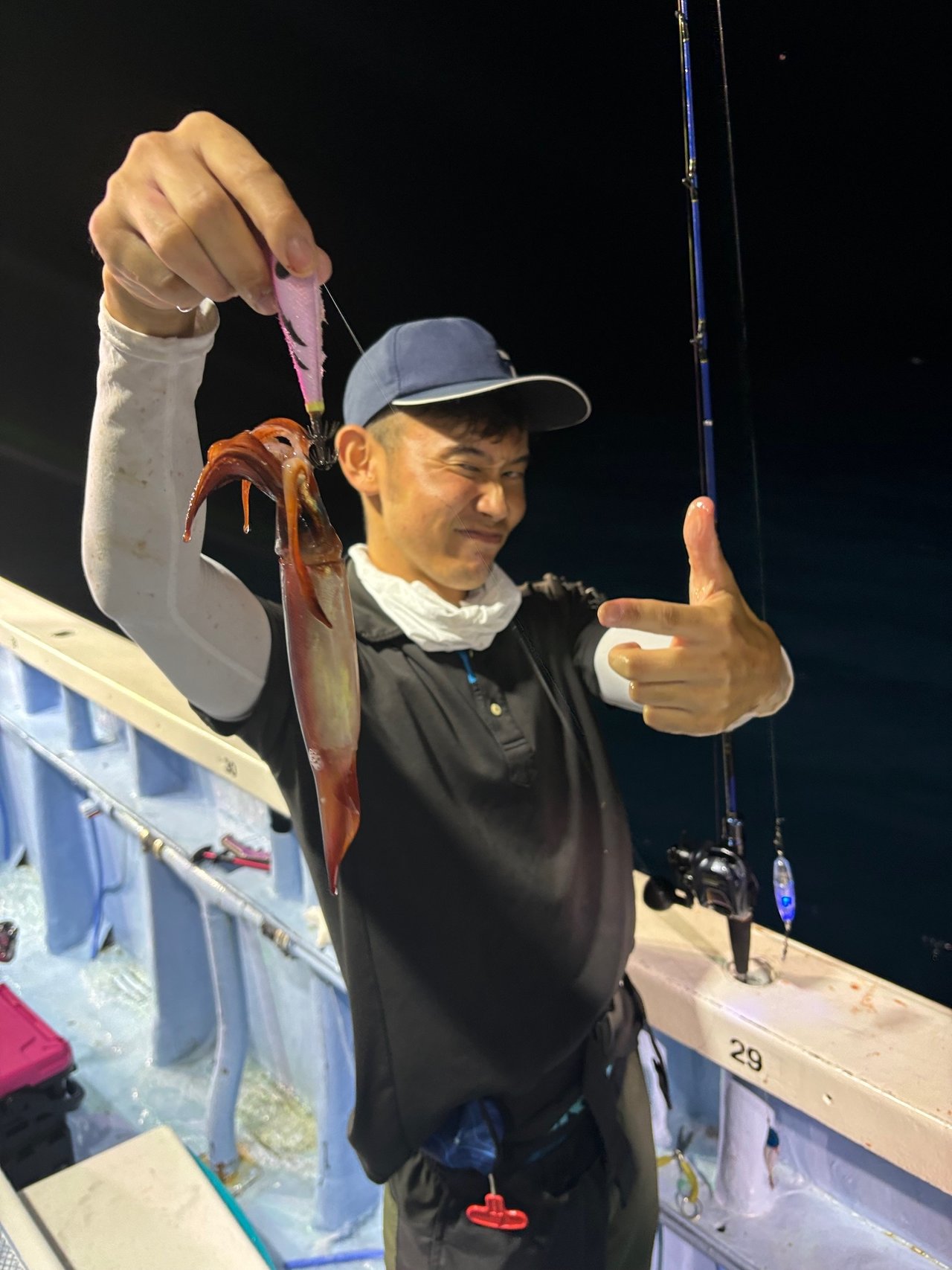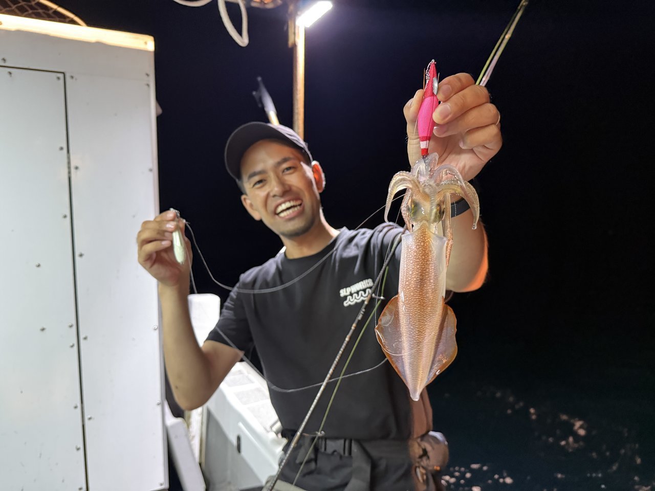 同行していた枇榔さんとお客様は私よりも浅いタナでイカを掛けていました。集魚灯を使うとイカのいる水深が変わってくるのでヒットする水深を探すのもイカメタルの楽しみです。