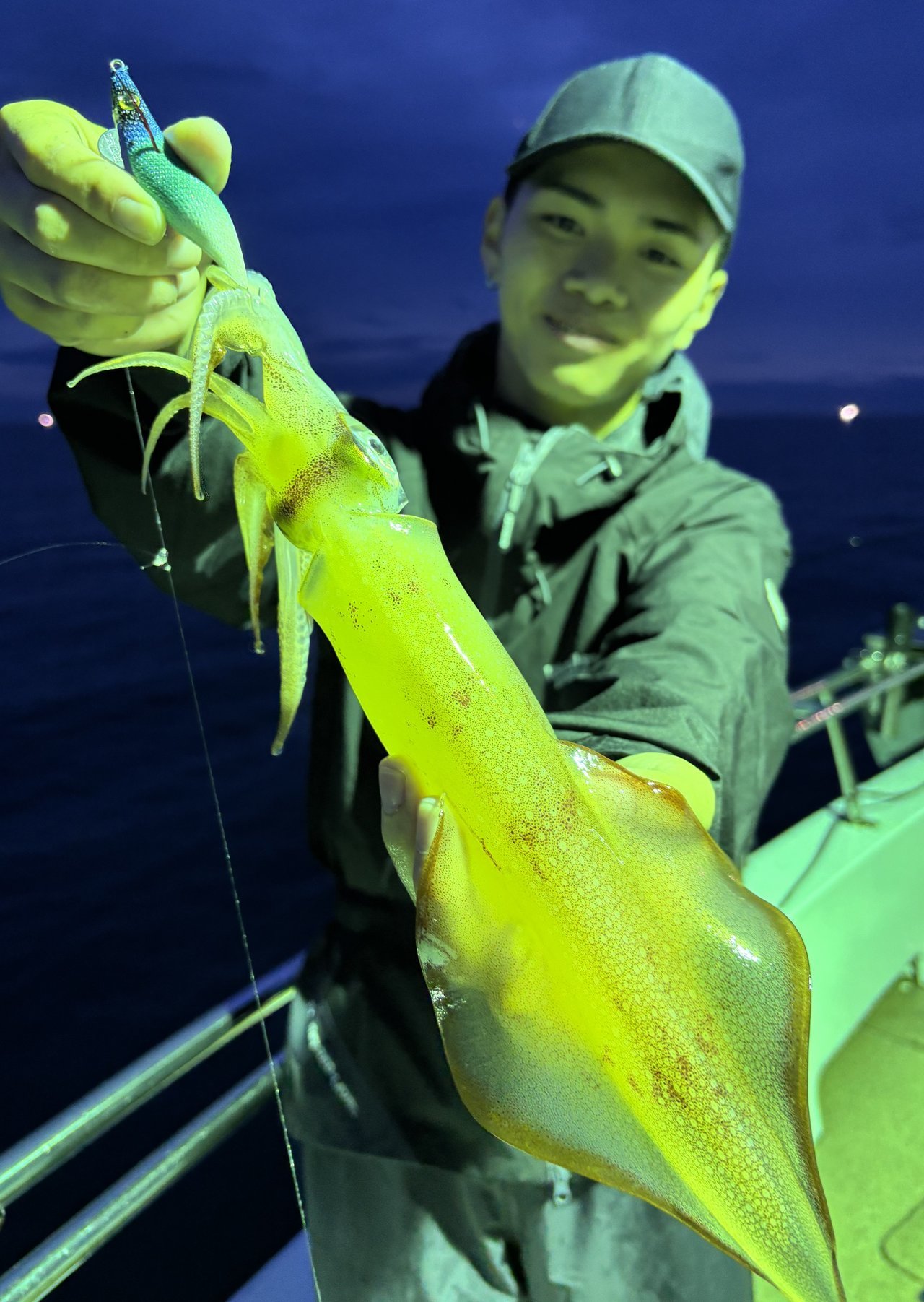 集魚灯が効くまではオモリグをして、辺りが暗くなってからはイカメタル中心の釣りに変更。