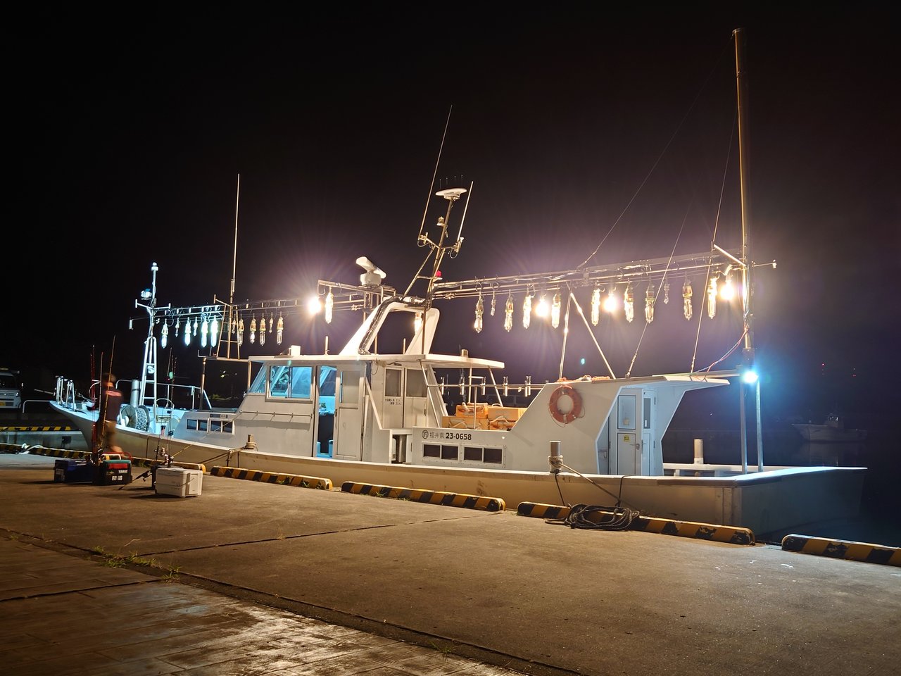 毎度お馴染み小浜港雲丸さんから出船です。今回は深夜便で斉藤船長の操船するセイザン号にスタッフ鈴木と同船のお客様の計4人で広々出航です。