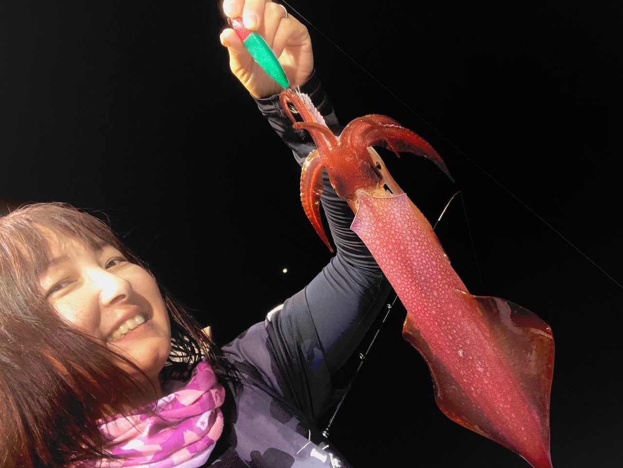 そのまま続けるとまたアタリがあって今度はしっかり重みが乗り開始早々にケンサキに会えました♪