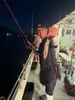 ポイント到着早々にポツポツ釣れてますが、私は若干出遅れ感で数杯…。そうこうしていると早夜便で出ていたスパイダー号の雲船長から釣れていると呼ばれてポイント移動。これが大当たりで始めは25メートル付近で釣れていましたがすぐに棚が上ずり終盤は3メートルでも釣れてくる高活性。