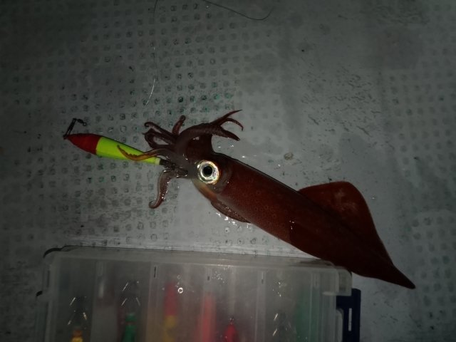 イカの動きは早く、一回の流しで取れるのは一投目だけのことが多くて二投目にはもうイカの姿は無いみたいな状況でした。