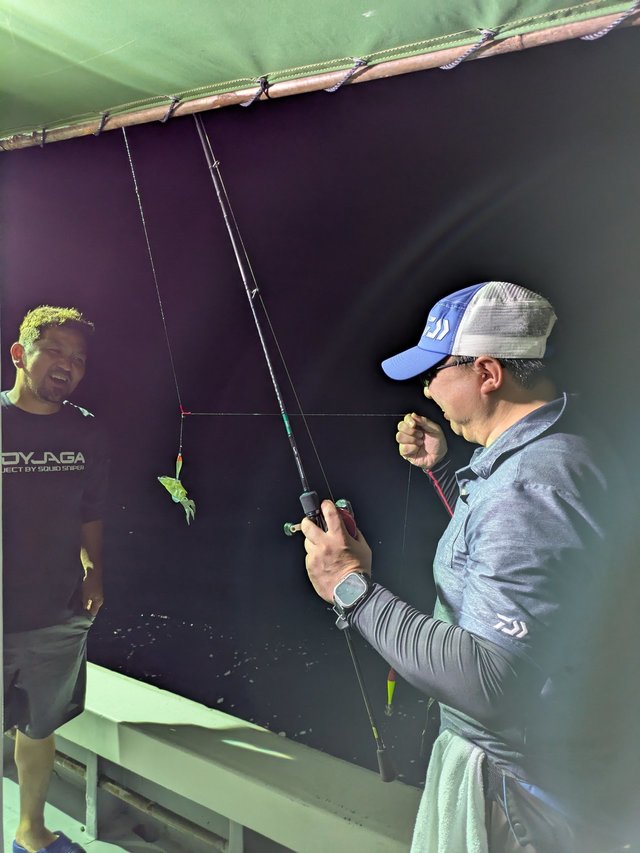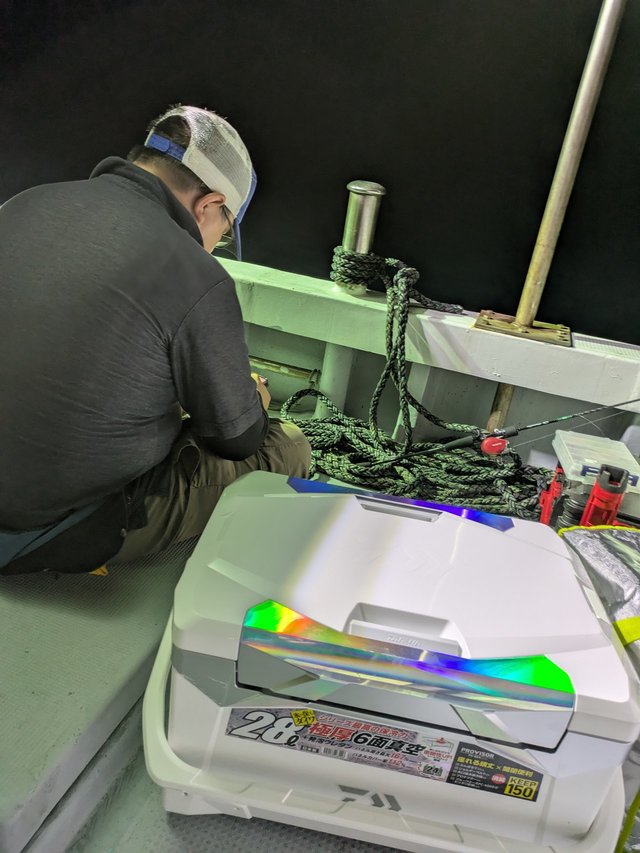 後ほど船長に聞いてみるとものすごい大きな反応にも3回ほどあたっていたとのこと、イカのスイッチが入らなかった(入れられなかった)ようで、まだまだイカはいるみたいです。