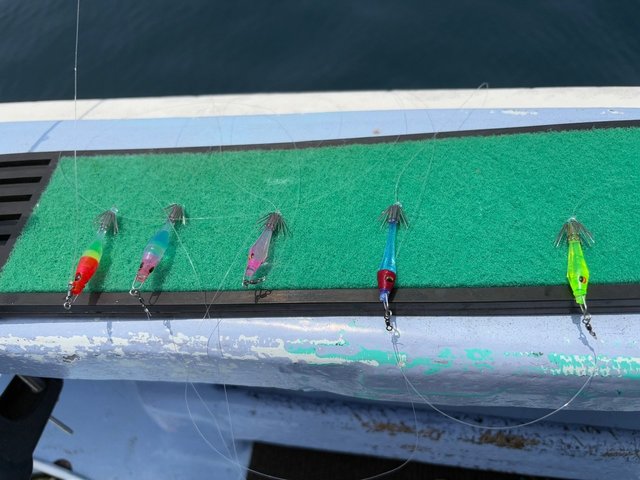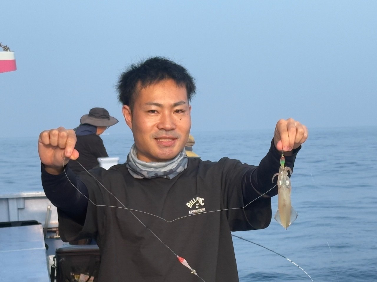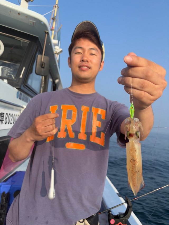 当日はオモリ50号指定。前日とは打って変わって潮の流れが速く、イカからの反応は少なめ。アタリが続かず、さらにはオマツリも多発と、なかなか難しい展開となりました。