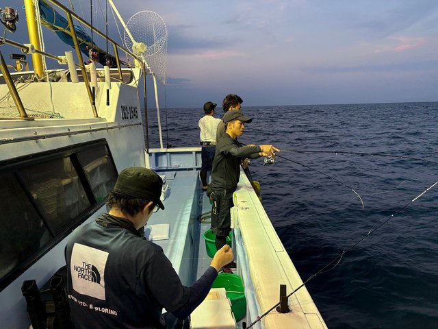 連休でしたので好調な夜焚きイカメタルへ行ってきました!前日はよくノッた日でしたが、浮いてきたレンジがなかなか続かずの状況。それでも中層の20m前後は終日よくアタリ、80パイオーバーの釣果となりました。出船前後はまだまだ暑く、これからは更に暑くなります。暑さ対策・水分補給はこまめに行い、好調な夜焚きイカメタル是非釣行されてみてください!!