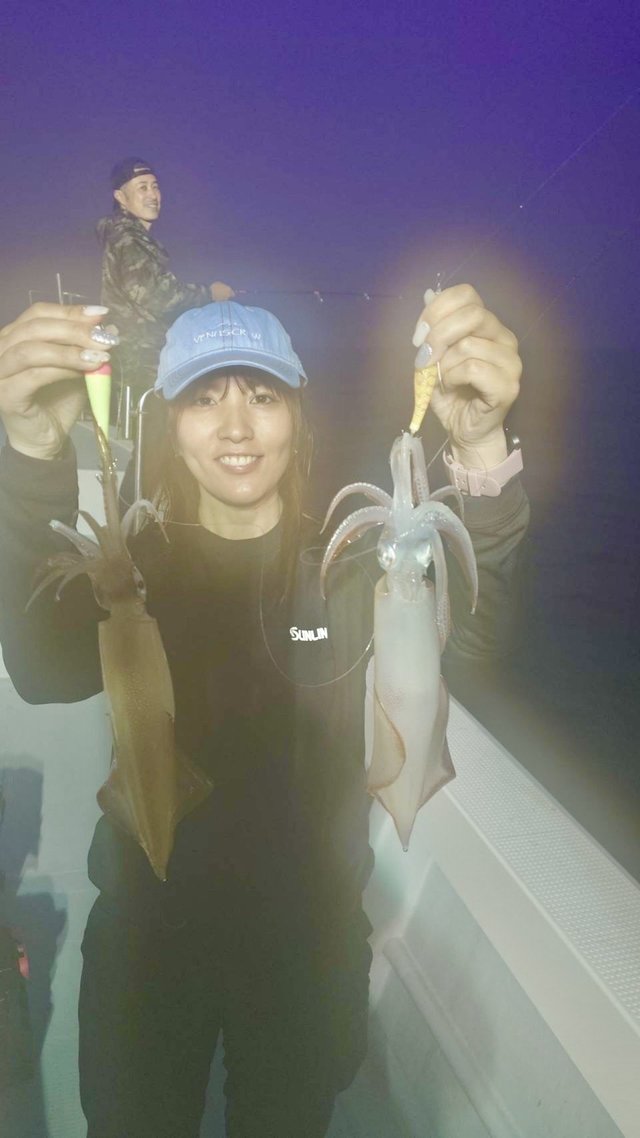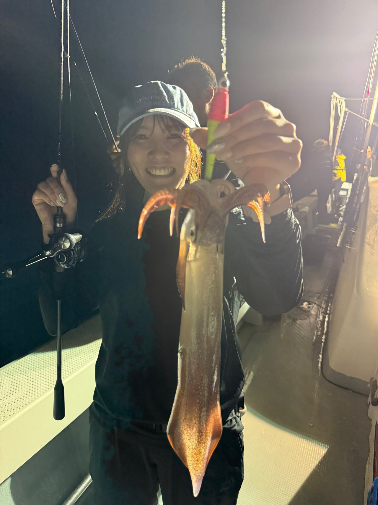 ケンサキイカ、スルメイカ狙いでお客様にお誘いを受け店長と出船。