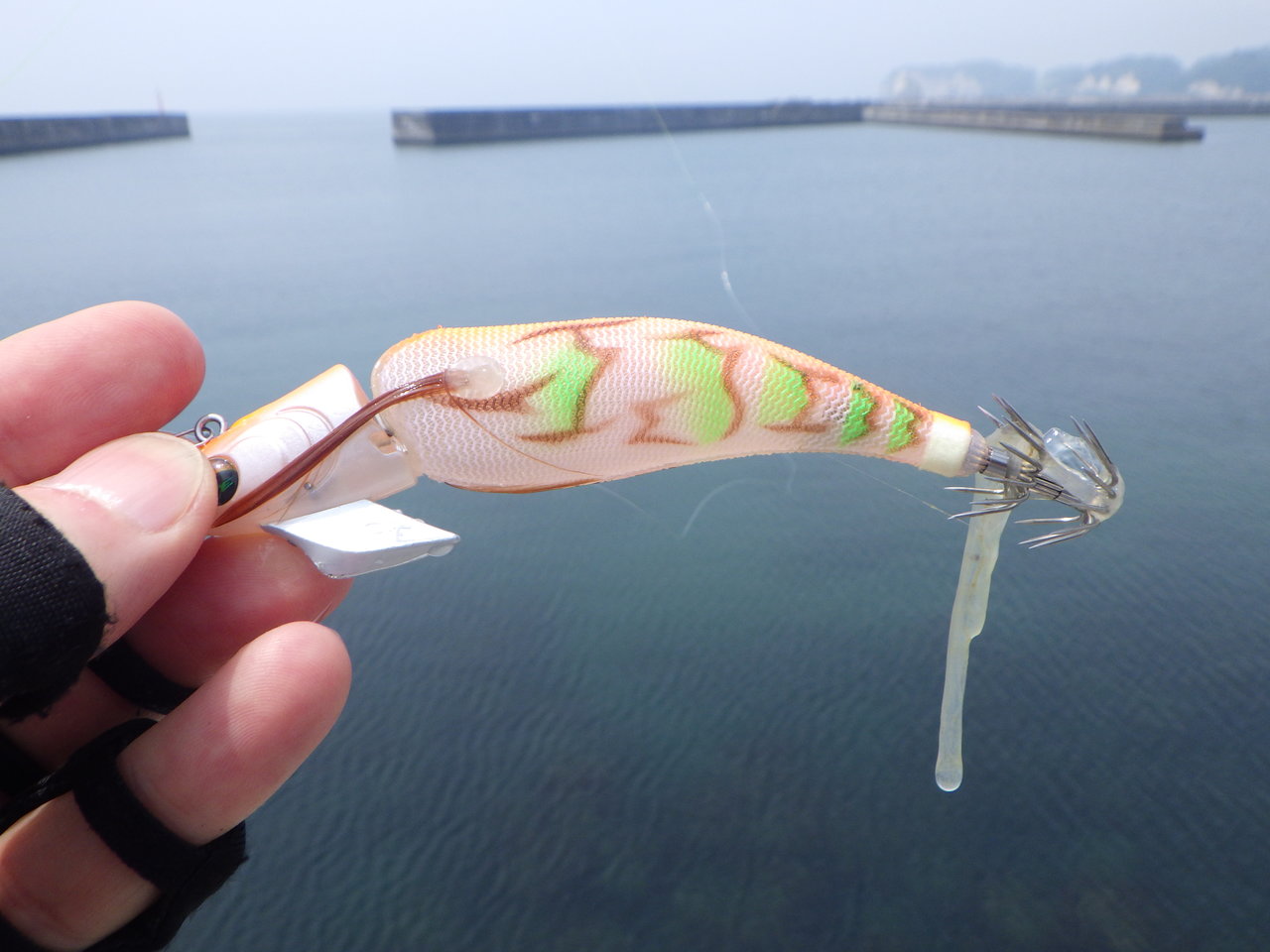 アオリイカを求めていわきサンマリーナに行って来ました。当初館山に行く予定でしたが、暴風雨の予報だったため(結局予報は外れたみないです)、急遽いわきに変更。到着すると先に釣りをしていたエギンガーたちが、どんどん帰っていくところでした。到着した9時頃が潮止まりだからでしょう。と自分に思い込ませ開始。当然アタリも何もなし。掛かってくるのはアマモばかり。少しづつ何度か移動すると、動いている茶色い物体が!どう見てもアオリ。しかも1杯は確実にkgオーバー!何十投しても反応無し…ペアリングしているためか、腕なのか。その後、小さめのペアリングしている個体が続々目の前に。トータル10杯以上。それでも反応なし。と思ったら足だけ掛かってるし…心が折れて、アクアマリンふくしまの裏に移動。そこでも何もなく終了。