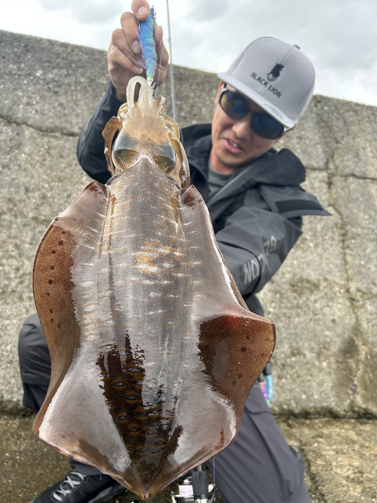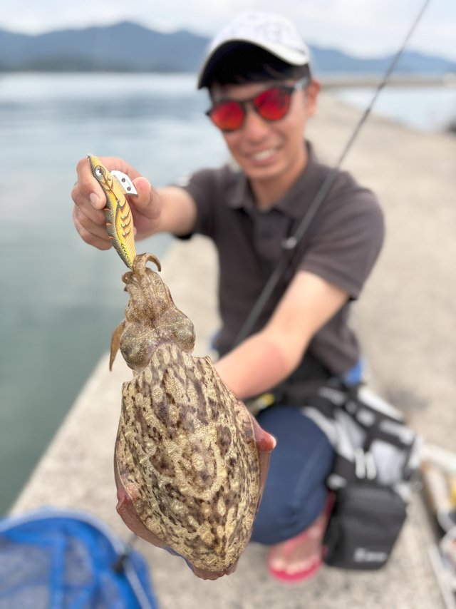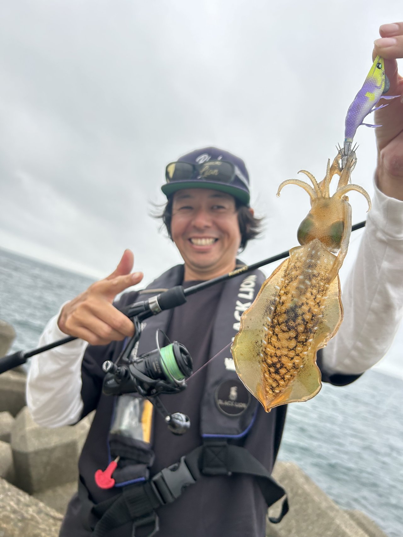 こんにちは!スタッフ佐久間です!凪&微風!釣りがしやすいことこの上なしの条件ですが、超大雨。終日曇天の為、グロー系のカラーを使いました。袖の雨水を振り払うように精いっぱいシャクりましたが渋。なんとか本命のアオリをキャッチしましたが、不完全燃焼で帰航しましたー。