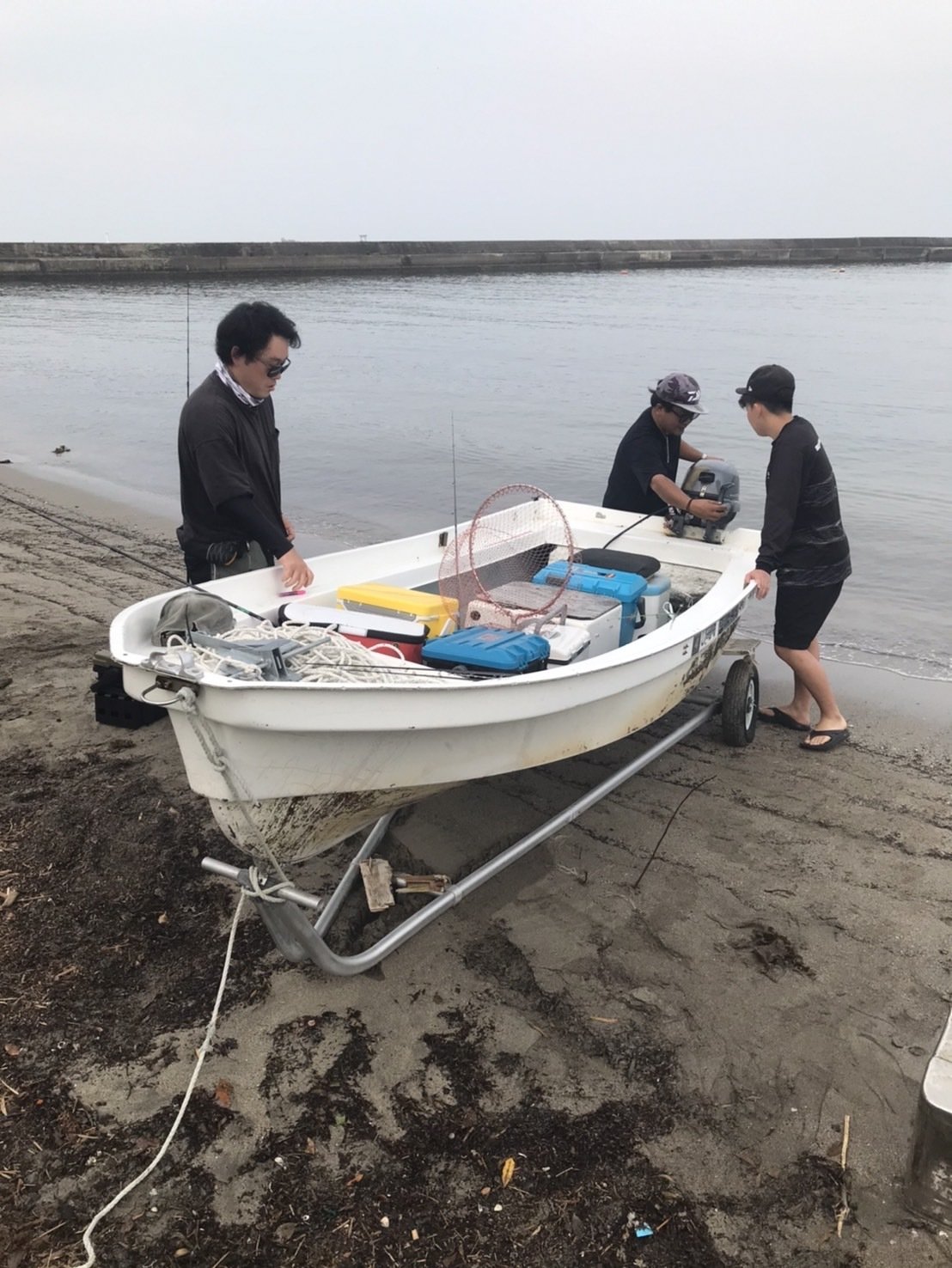 でもムギイカも面白いよってことで新田先生に誘われて大和丸さんへ、当日は雨模様の曇り空でイカ釣りにはもってこいの模様