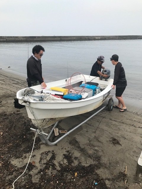 前回は手漕ぎでしたが今回はエンジン付き。一応船舶免許を持っている山本船長張り切って出船です。