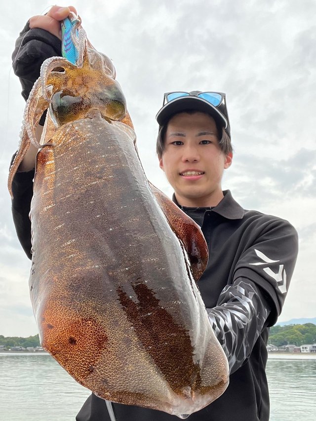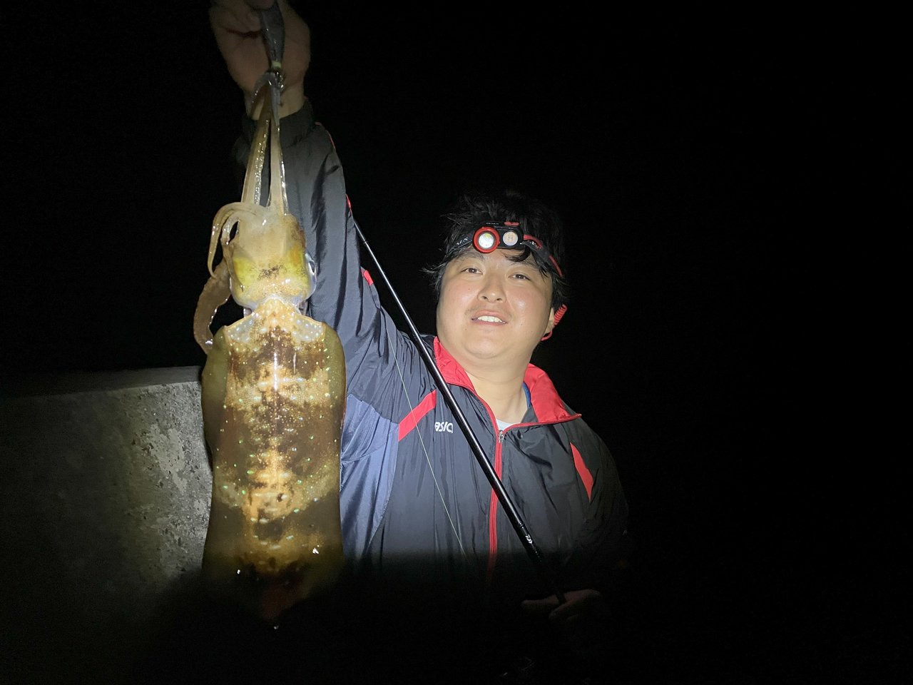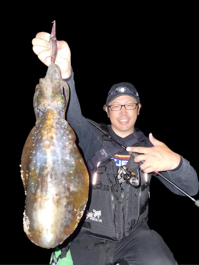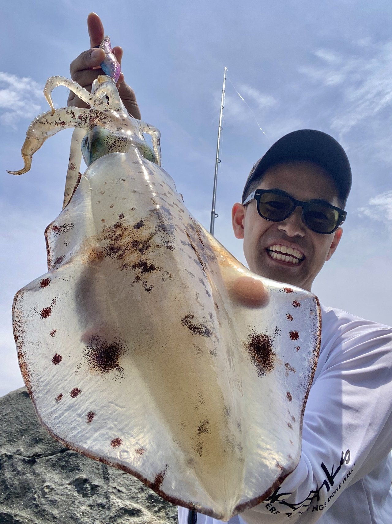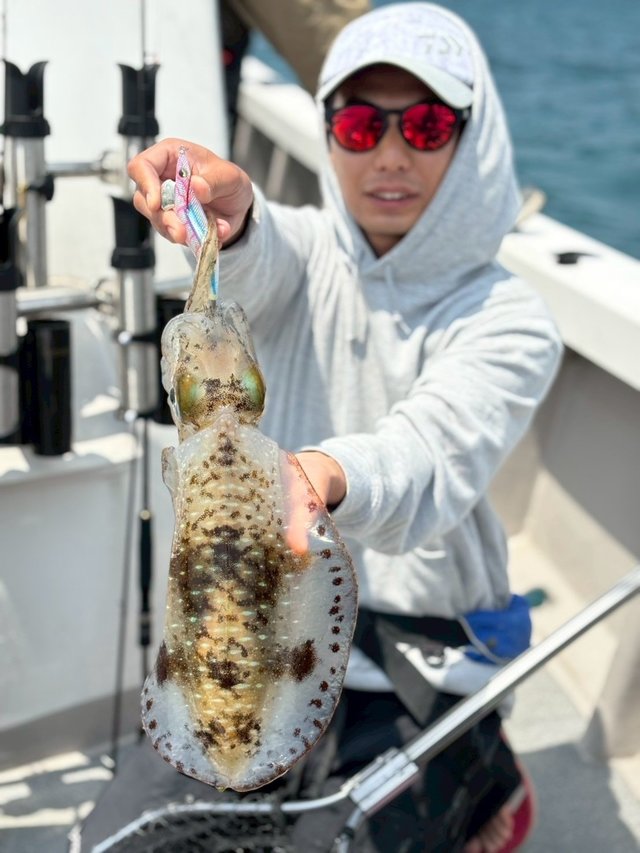 こんにちは!スタッフ佐久間です!今回はボートエギングに初挑戦してきました!専用タックルは持っていないのでオカッパリタックルを流用。巻き込み側に釣り座を構え、周囲に気を付けつつ風に乗せてキャスト!糸を張らずに船長の水深アナウンスに合わせてカウントでフォールさせていきます。んーなかなか当たらないなぁ、、周りでは釣れはじめ、そろそろ来るかなっとシャクルとグっと一瞬重くなる。海藻かなと一応もう一度フォールさせて竿先で聞いてみると、ぐっぐっと重い!思いっきり合わせてやりました!1杯目!その後、手を変え品を変え、もう1杯追加して終了となりましたーオカッパリタックルでも挑戦できる「ボートエギング」に皆様も挑戦してみてはいかがでしょうか!
