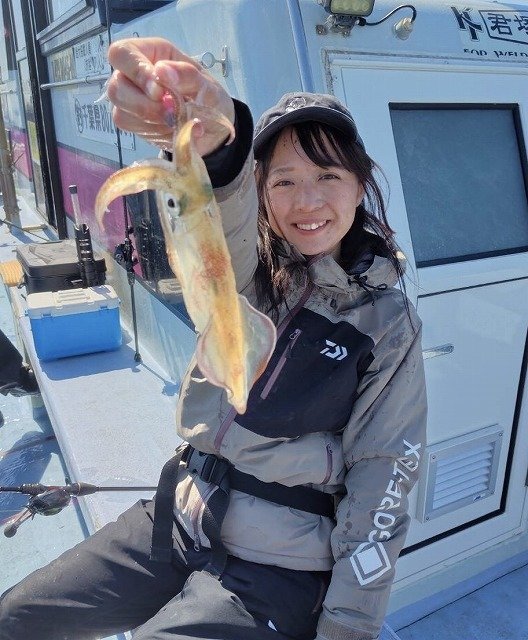 後半は風は和らいだのですが潮が動かずバーチカル状態に。前アタリが出てから20秒以上のロングステイのパターンで2杯キャッチして3杯で終了。良型の春イカを楽しむことが出来ました!