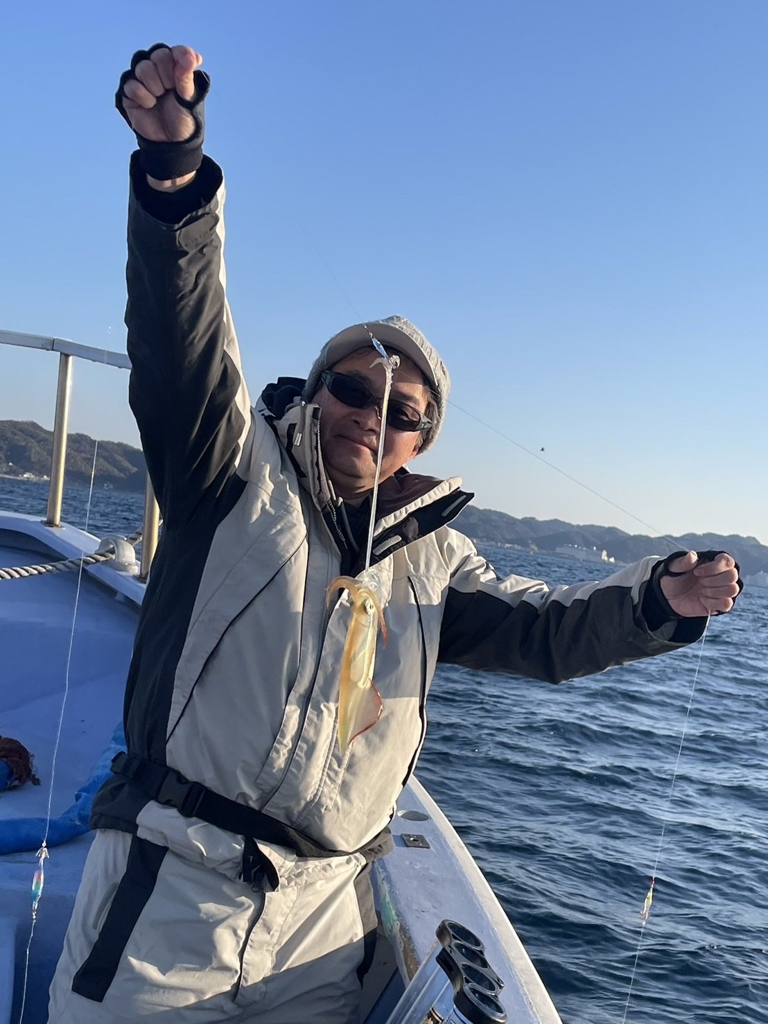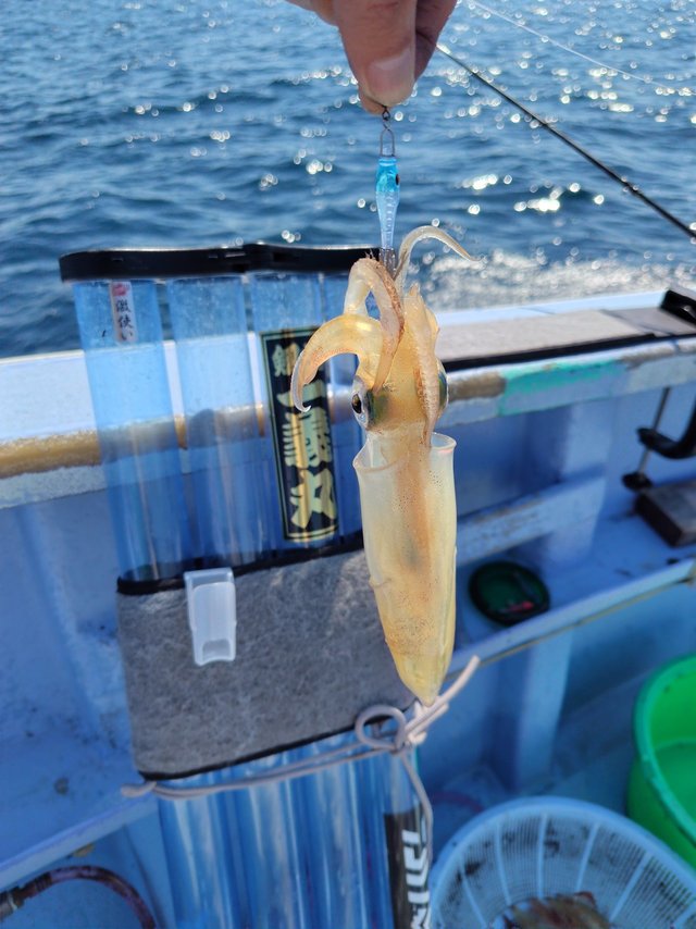 この時期の釣果はイマイチで、トップ4杯とかなり厳しめでしたが、なんとか私も、2アオリ釣れました♪約7時間シャクリ続けた腕は筋肉マッチョ確定(笑)