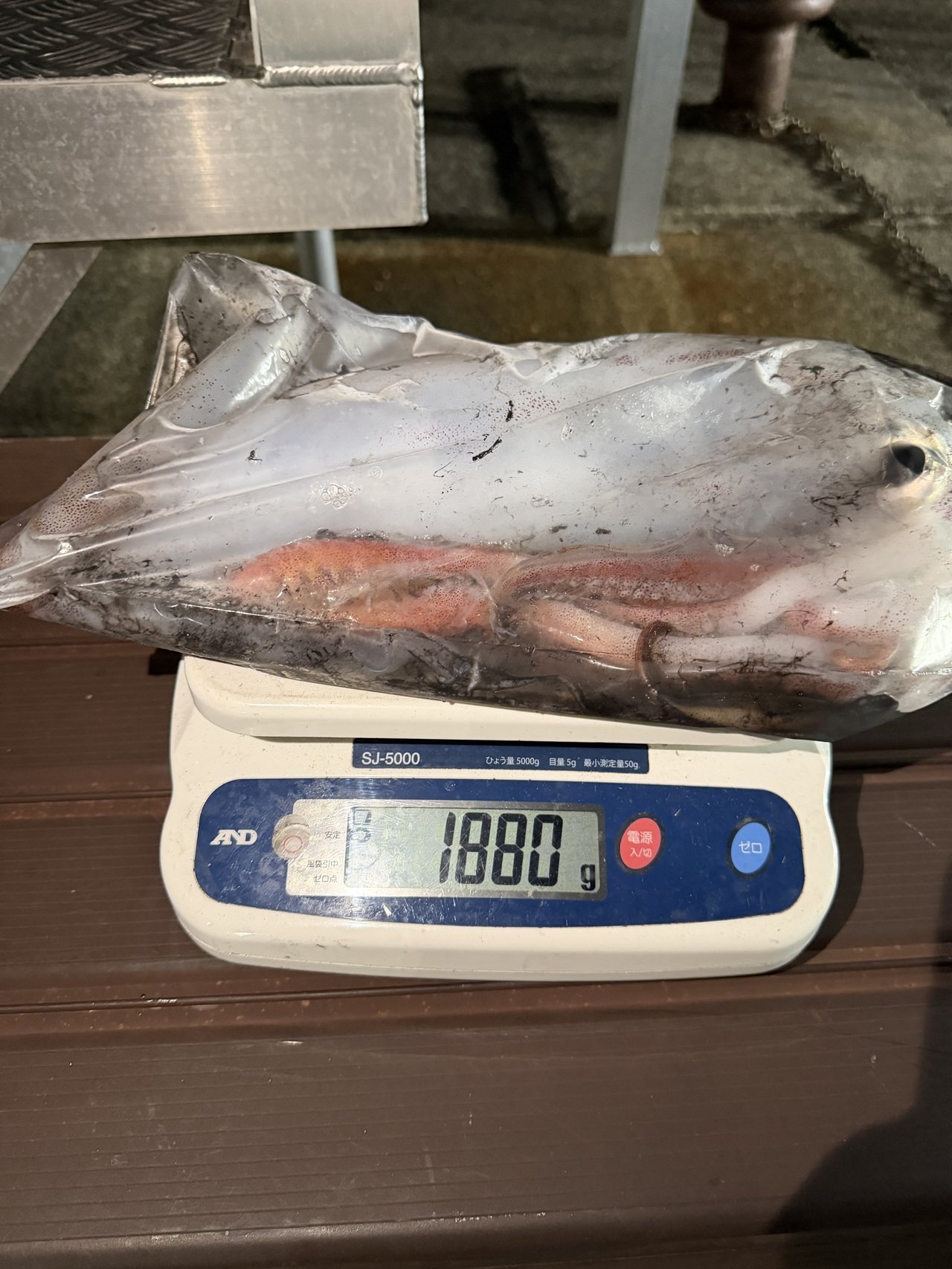 1880gと2キロには届きませんでしたがようやくいいサイズの赤系アオリイカをキャッチできました^_^